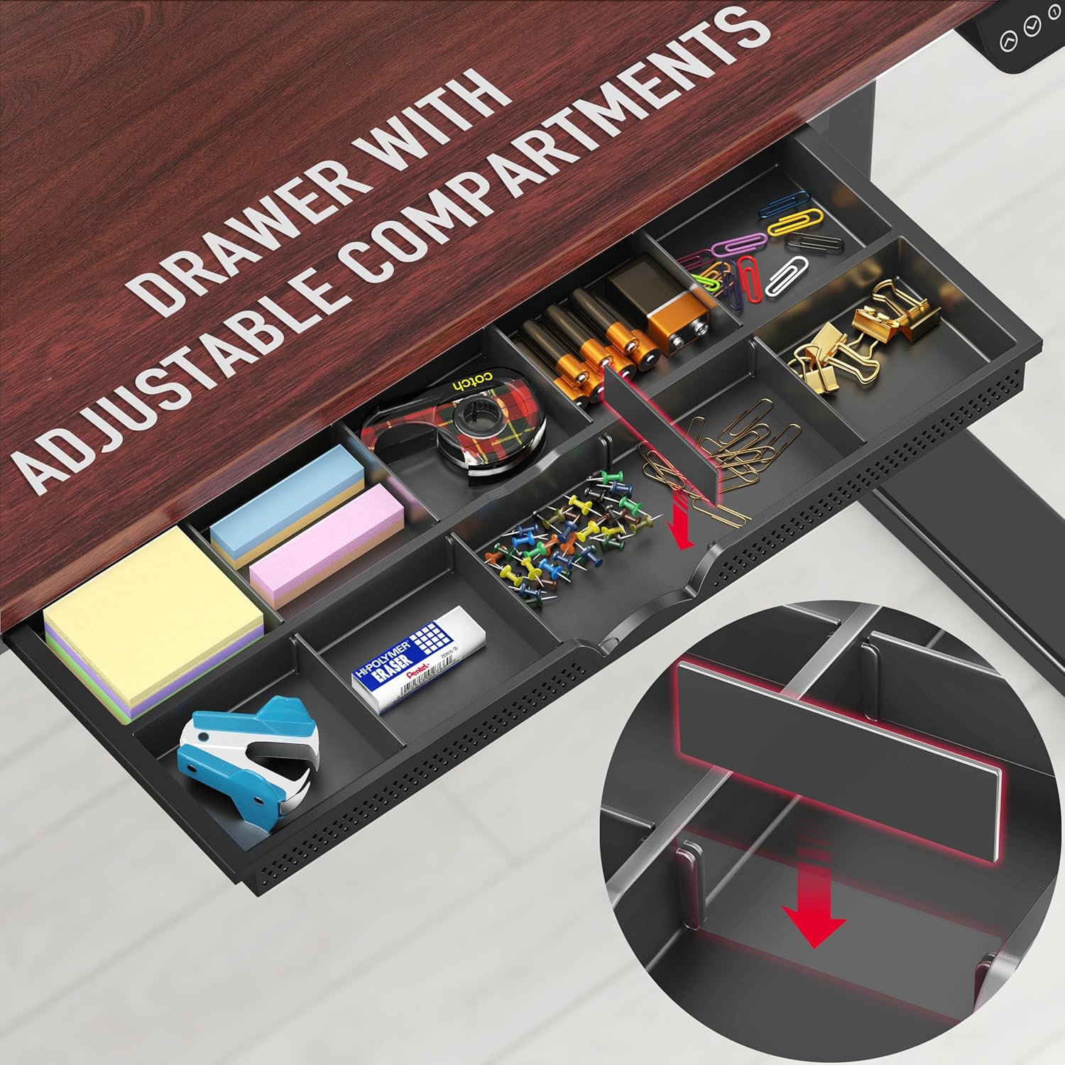 SHW 55 x 28 Inches Electric Height Adjustable Standing Desk with Drawer and Memory Preset, Cherry