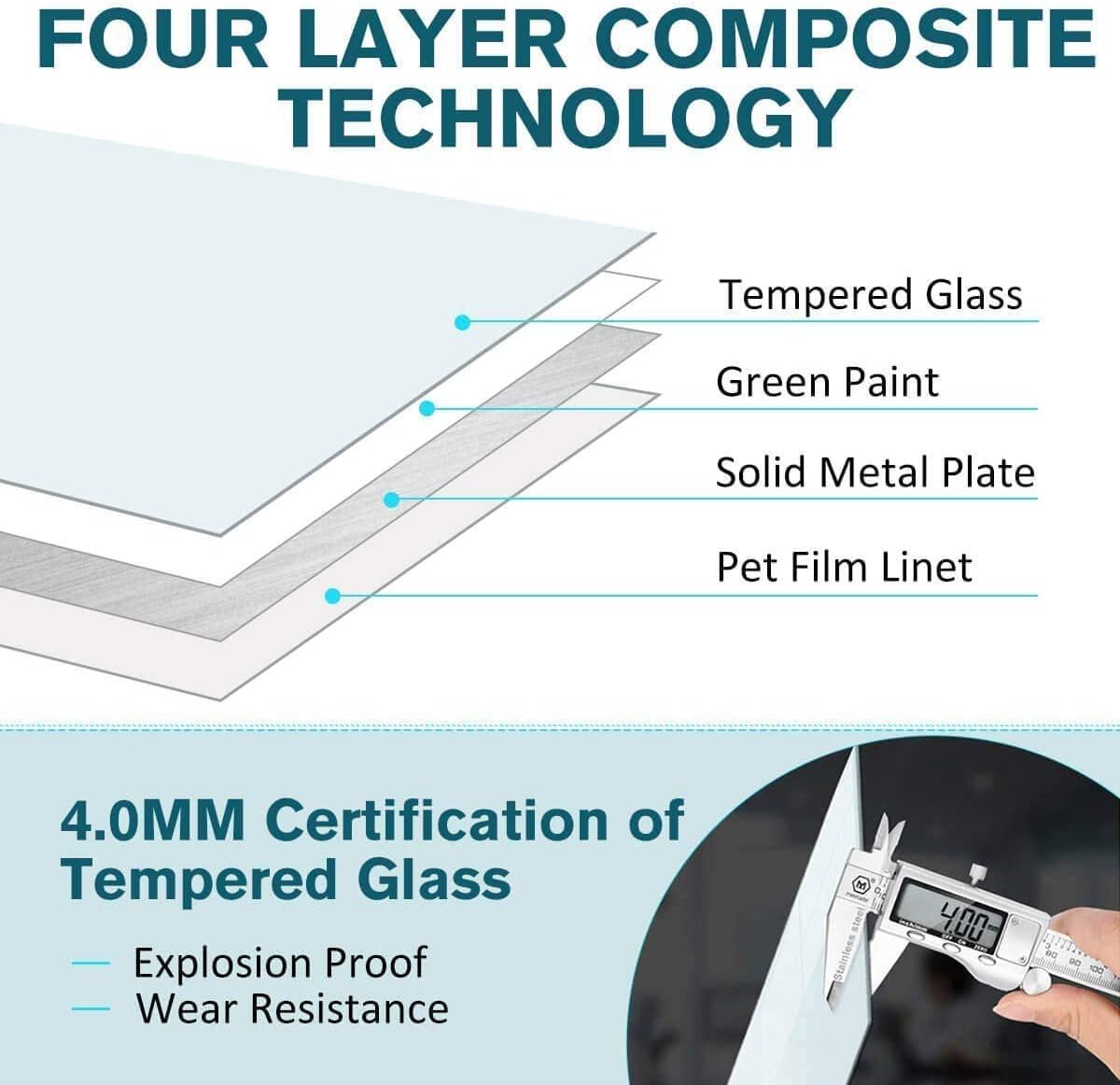 - 【EASY INSTALLATION】- Our glass board is using a split-type installation method Because the large glass board is so heavy, hard to carry and install, You know that the labor cost is high now, so we have thoughtfully designed the split installation method, It is formed by splicing two 43x36" glass boards, In this way, one person can easily carry and install, the edges are precision polished to make sure the seams are thin, you can complete the installation without professional technicians