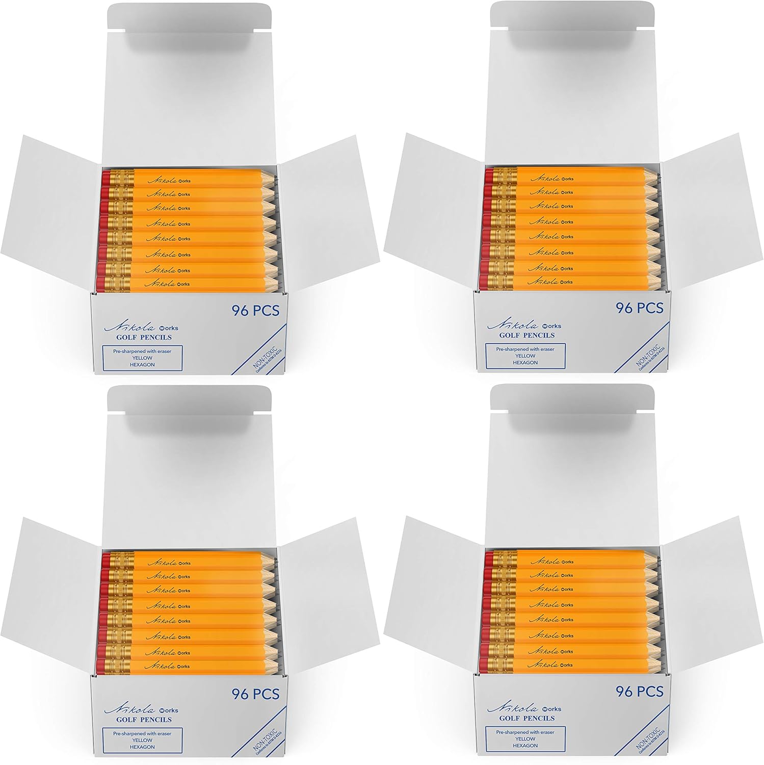 Mini Golf Pencils With Erasers - 384 Count - Classic Pre-Sharpened #2 HB American Pew Pencils Standard Hex Shaped Bulk Pack