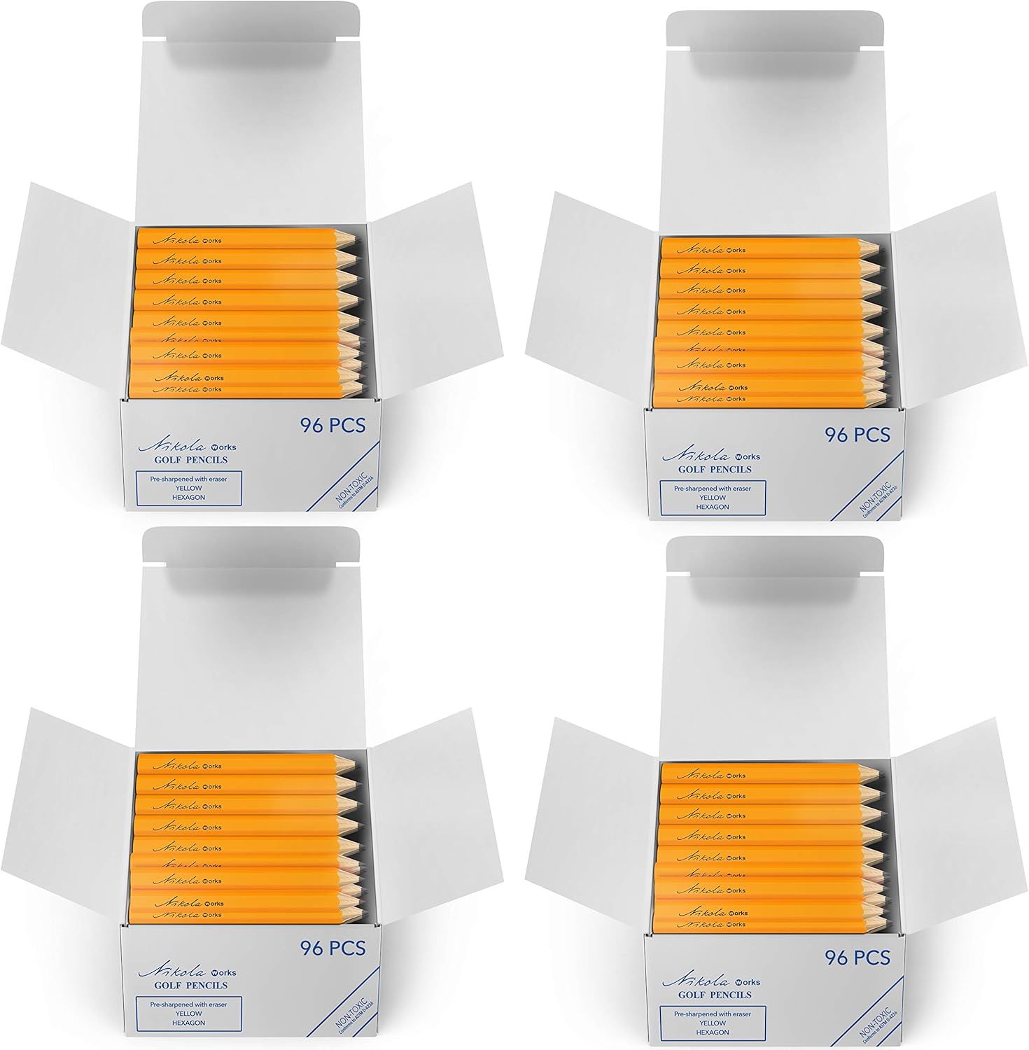 - Each Inner Box is Packed With 96 Premium Miniature #2 Pencils. Each Pencil is Made From High-Quality Wood for Clean Easy Sharpening, But They Are Already Presharpened So There's No Need To Sharpen, You Can Just Toss One In Your Shirt Pocket and Hit The Golf Course.