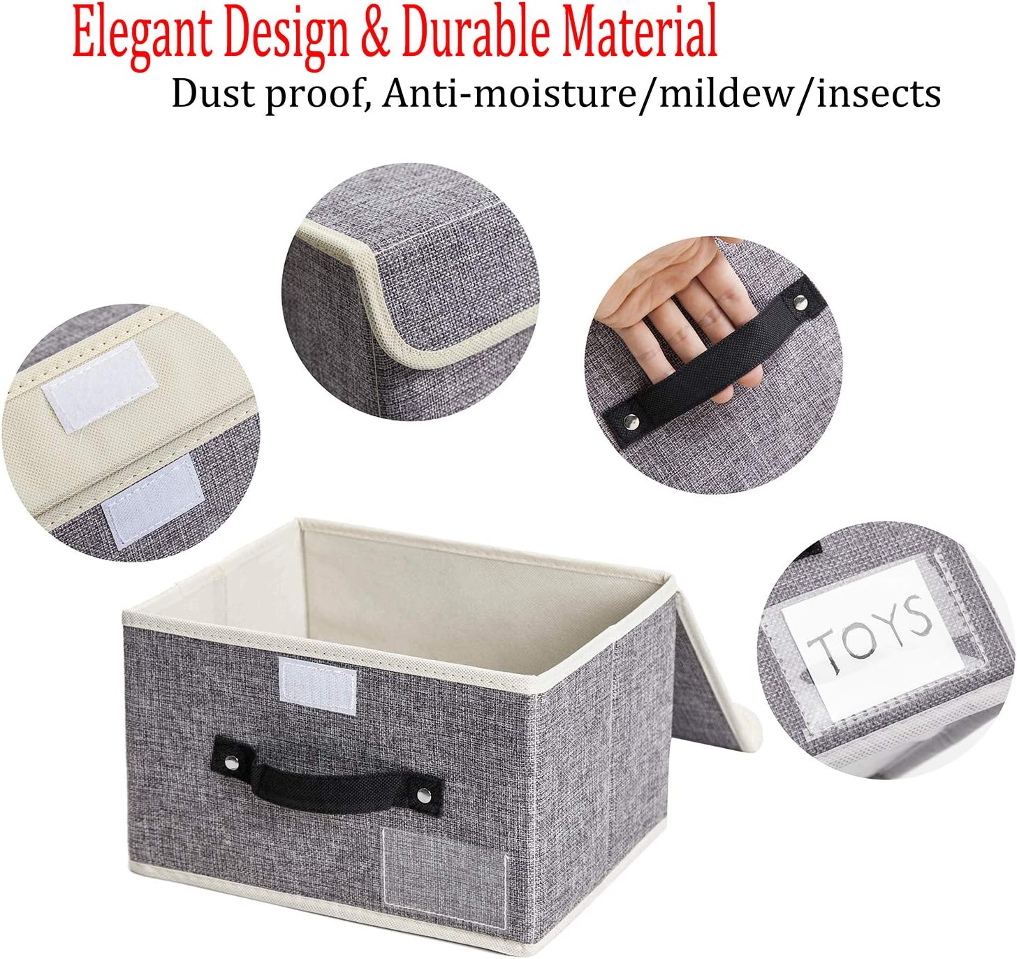 Small Storage Boxes with Lids 2 Pack Linen Collapsible Cube Storage Basket with Handle & Label, Jane's Home Foldable Fabric Storage bins for Shelf & Closet to storage Clothes & Toys