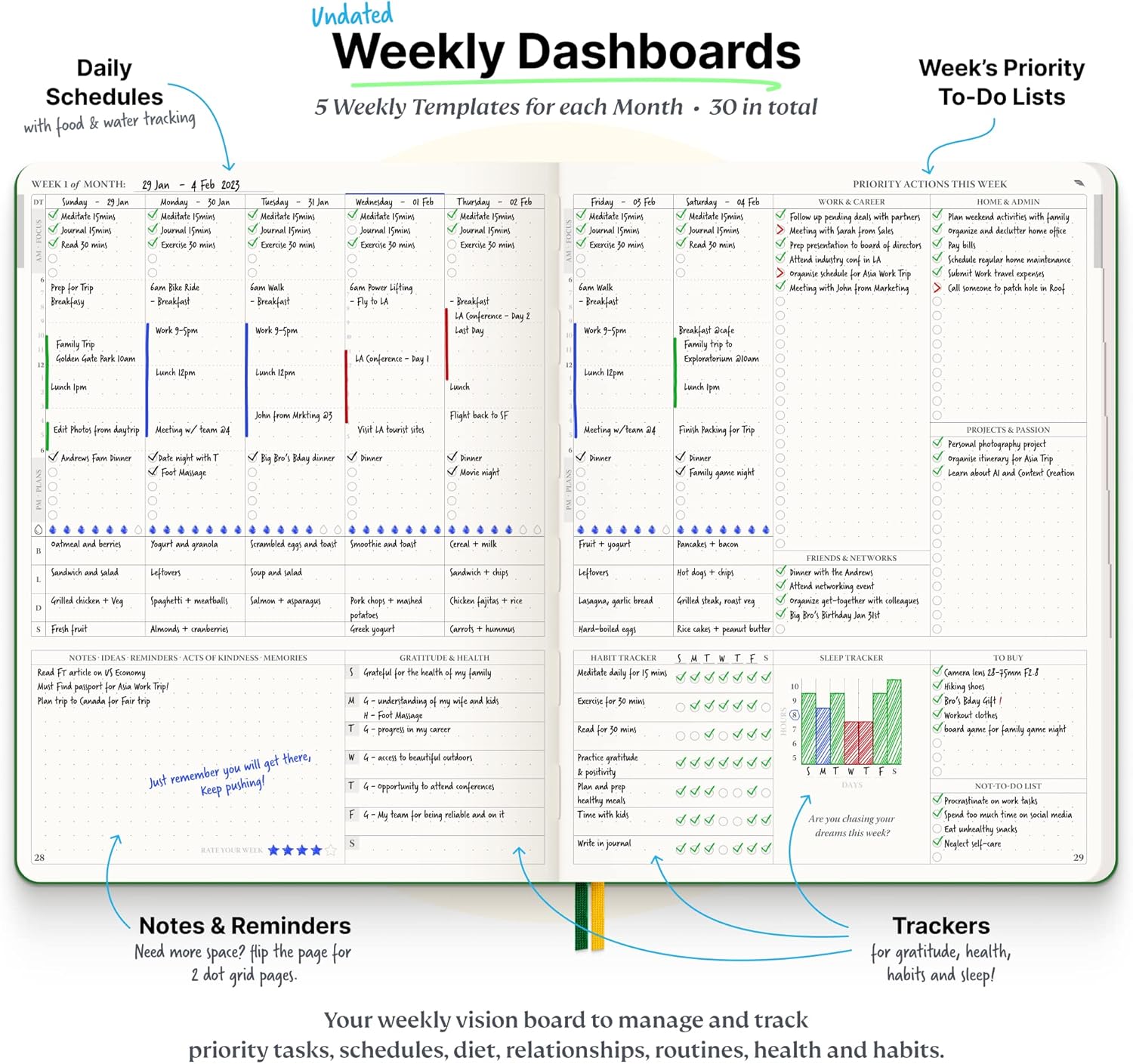 - Smash Your Goals & Prioritize Wellness: 5 Roles & Goals templates for purposeful goal setting. Reading, Bucket lists, & Self Care journal. AM/PM Routines, habit, nutrition, fitness, and health trackers included. Perfect planners 2024-2025 for women and men.
