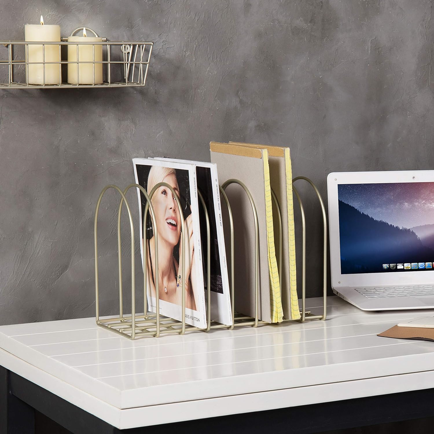 MyGift Large Desktop Document Holder, Brass Metal Wire File Folder Organizer Rack with 8-Slots and Arch Design