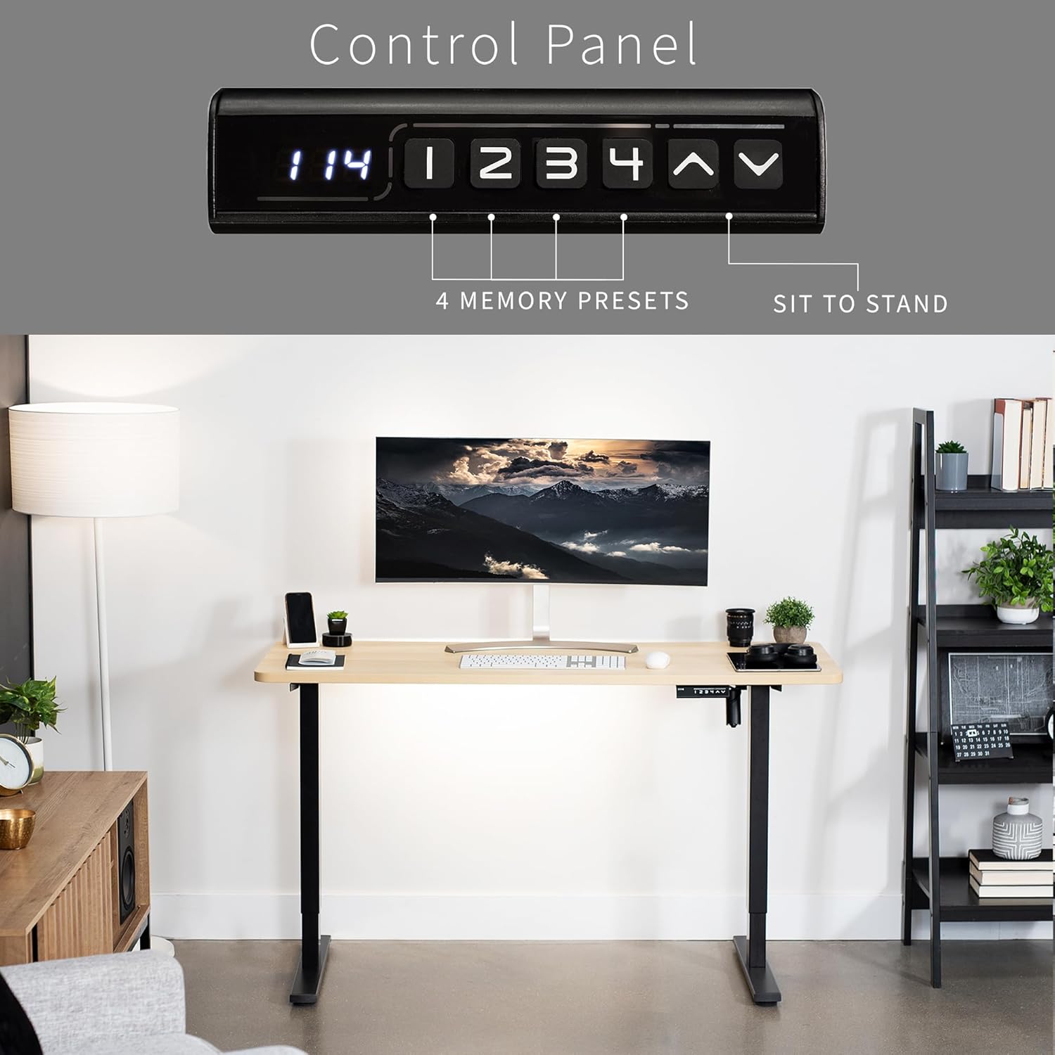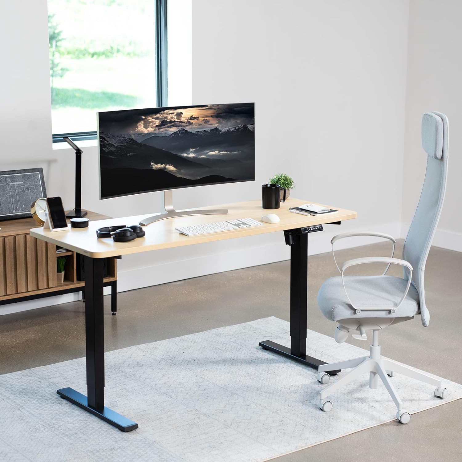 VIVO Electric 60 x 24 in Standing Desk, Memory Height Adjustment, 1B Series, One-Piece Light Wood Top, Black Frame, DESK-KIT-1B6C