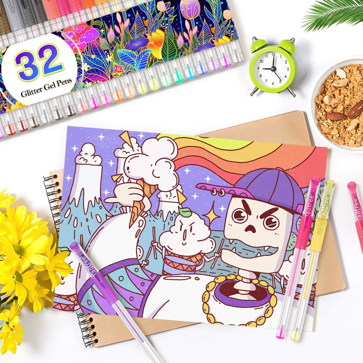 Taotree Glitter Gel Pens, 32 Colors Neon Glitter Pens Fine Tip Art Markers Set 40% More Ink Colored Gel Marker for Adult Coloring Book, Kids Drawing Art Supplies, Scrapbook, Journaling, Sparkle Gifts