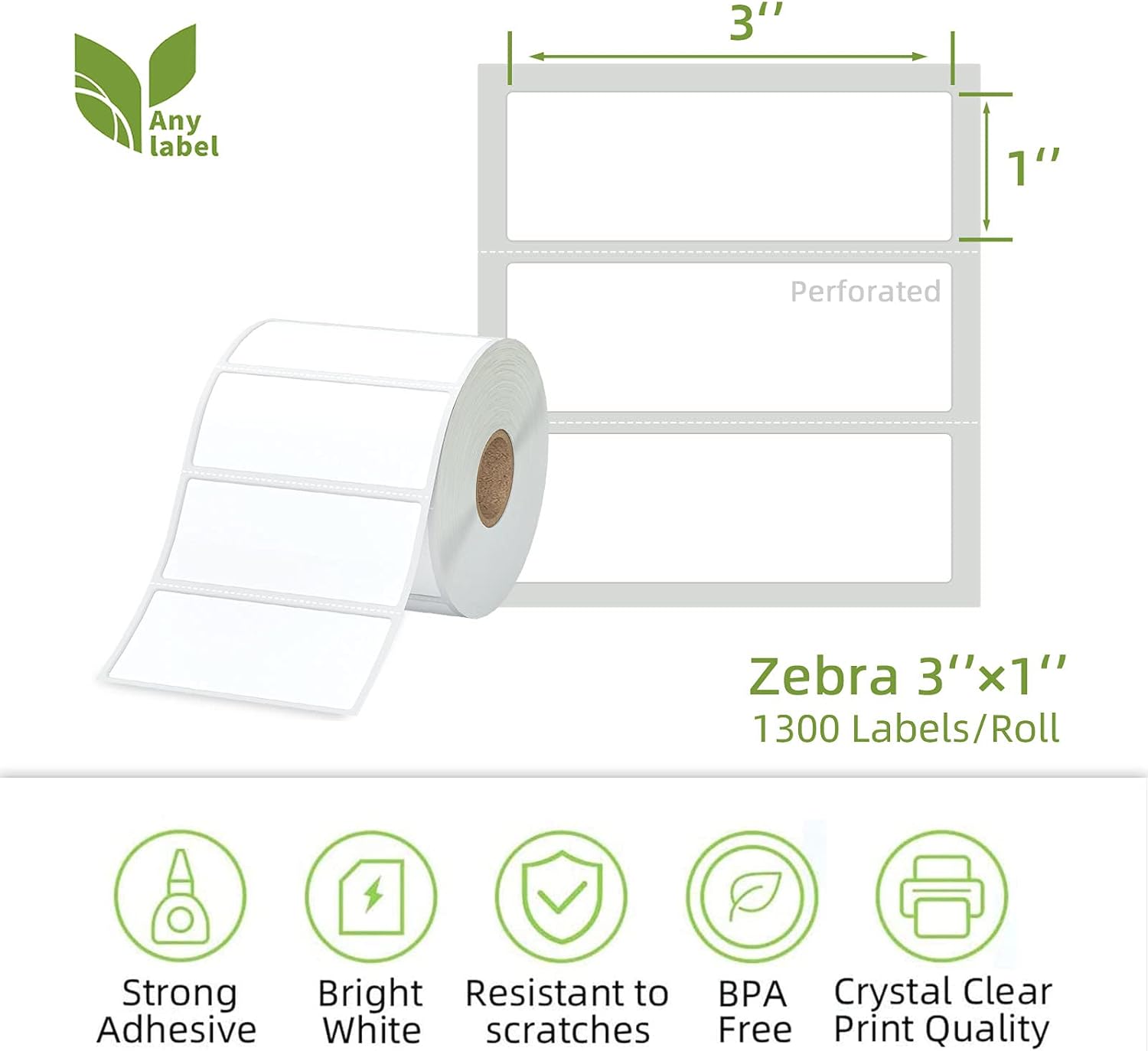 - 🧻QUALITY: Anylabel 3" x 1" Compatible Labels are White. Print darker & sharper barcode labels that permanently adhere to virtually any surface. BPA-free, Easy to peel off, fast & clear printing.
