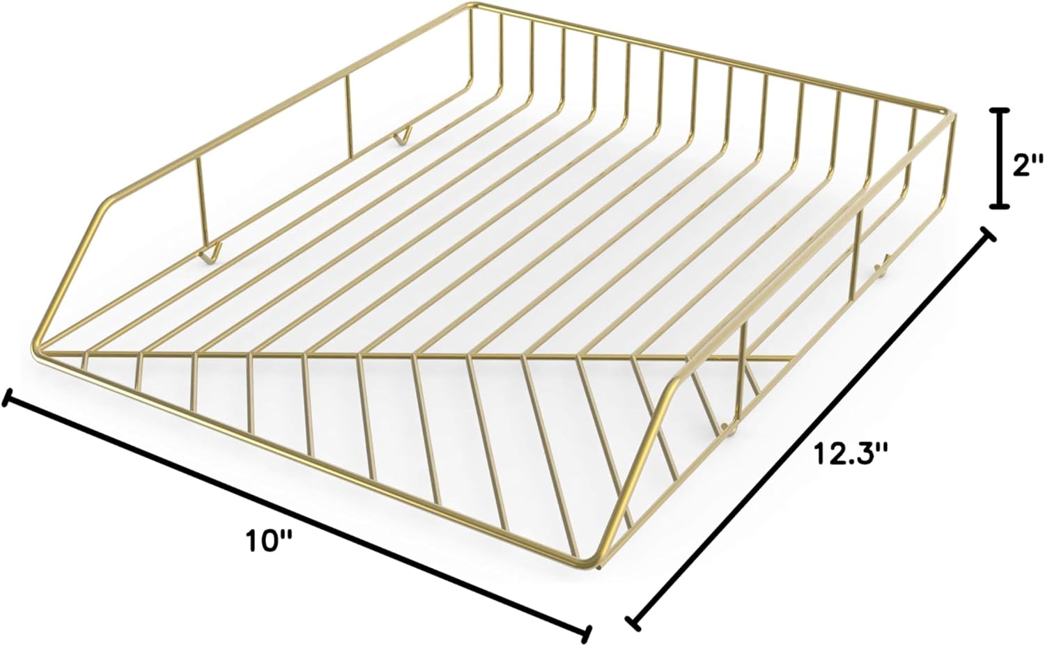 U Brands Metal Paper Tray, Letter Size, Desktop Accessory, Vena Collection, Gold, 3233U03-12