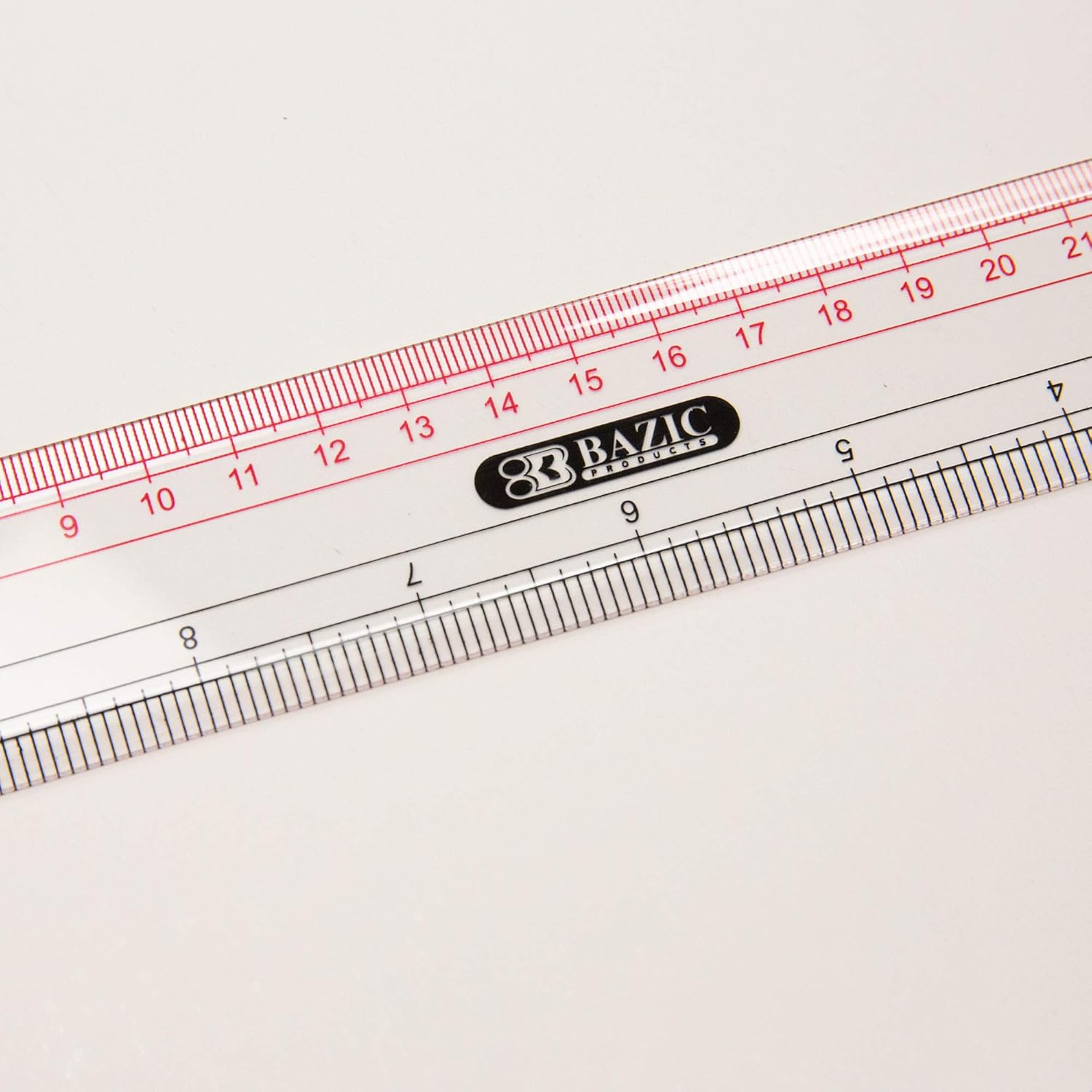 - ⭐ DOUBLE-SIDED MEASUREMENT. BAZIC's clear ruler contains a 12inch/30cm with beveled edge. Its two colors, inches scale in black; centimeter scale in red; the two scales can meet your different measuring needs!