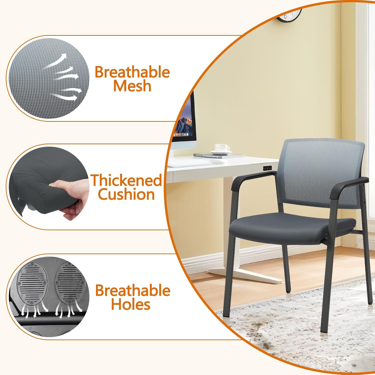 - 【Space-saving Stack chair】This office chair no wheels can be easily stacked, making it perfect for offices, conference rooms, reception areas, and other spaces where people come and go frequently.