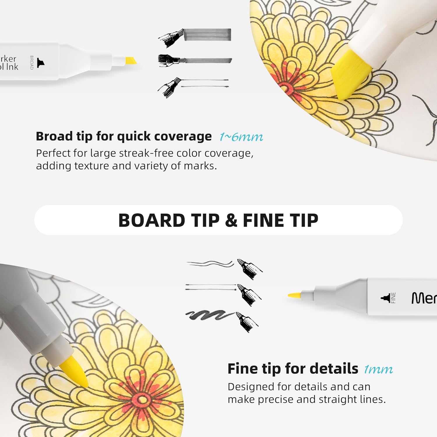 - UNLEASH YOUR CREATIVITY - The MemOffice alcohol based markers come with dual tips, allowing you to create versatile styles, sketches, and patterns with ease. Broad and fine twin tips are designed for precise highlighting, underlining, or quick coloring in large areas