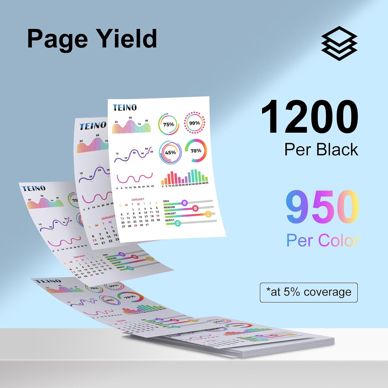 - TEINO ink cartridges display ink level real-time, deliver crisp, clear images and text. An ideal choice for home, office, school users looking for professional quality printing