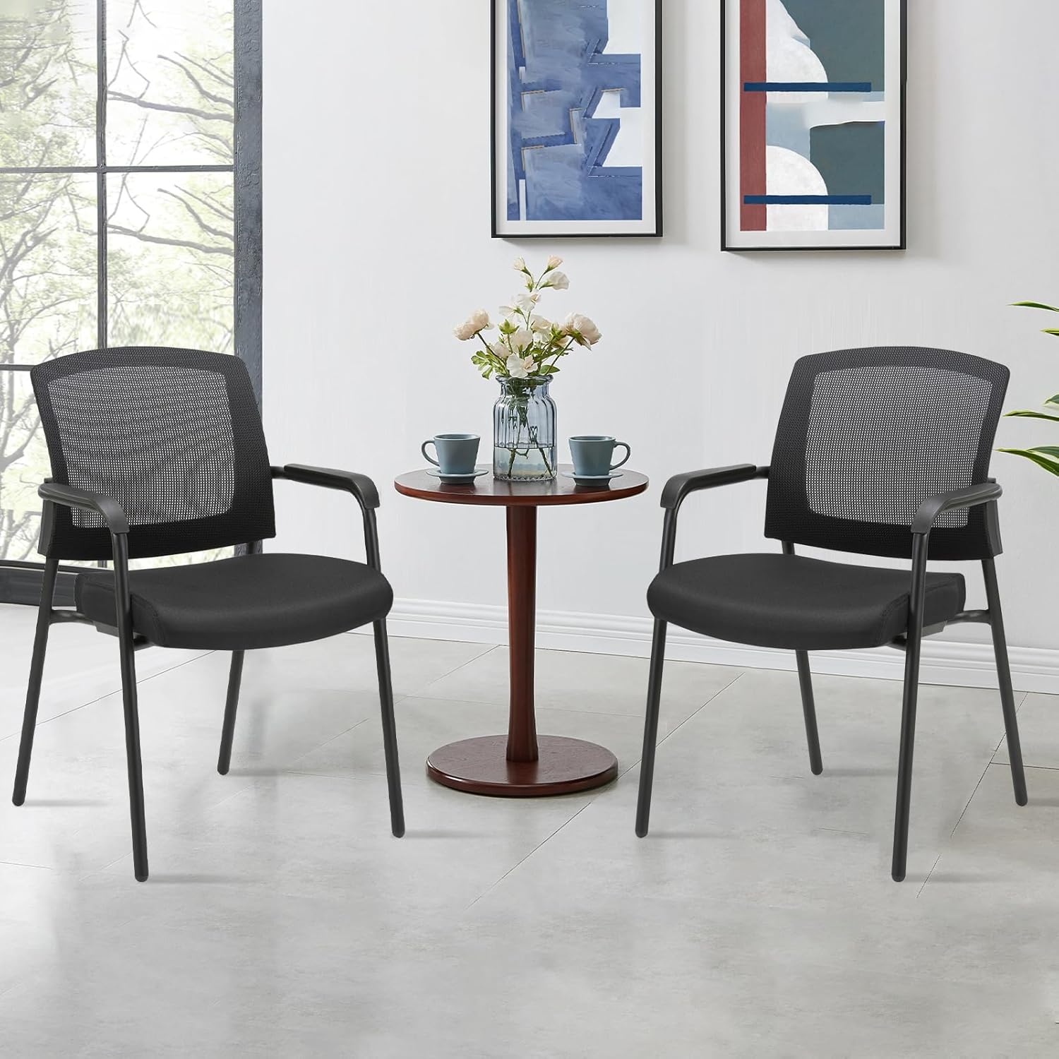CLATINA Office Reception Guest Chair Mesh Back Stacking with Ergonomic Lumbar Support and Thickened Seat Cushion for Waiting Conference Room Black 2 Pack