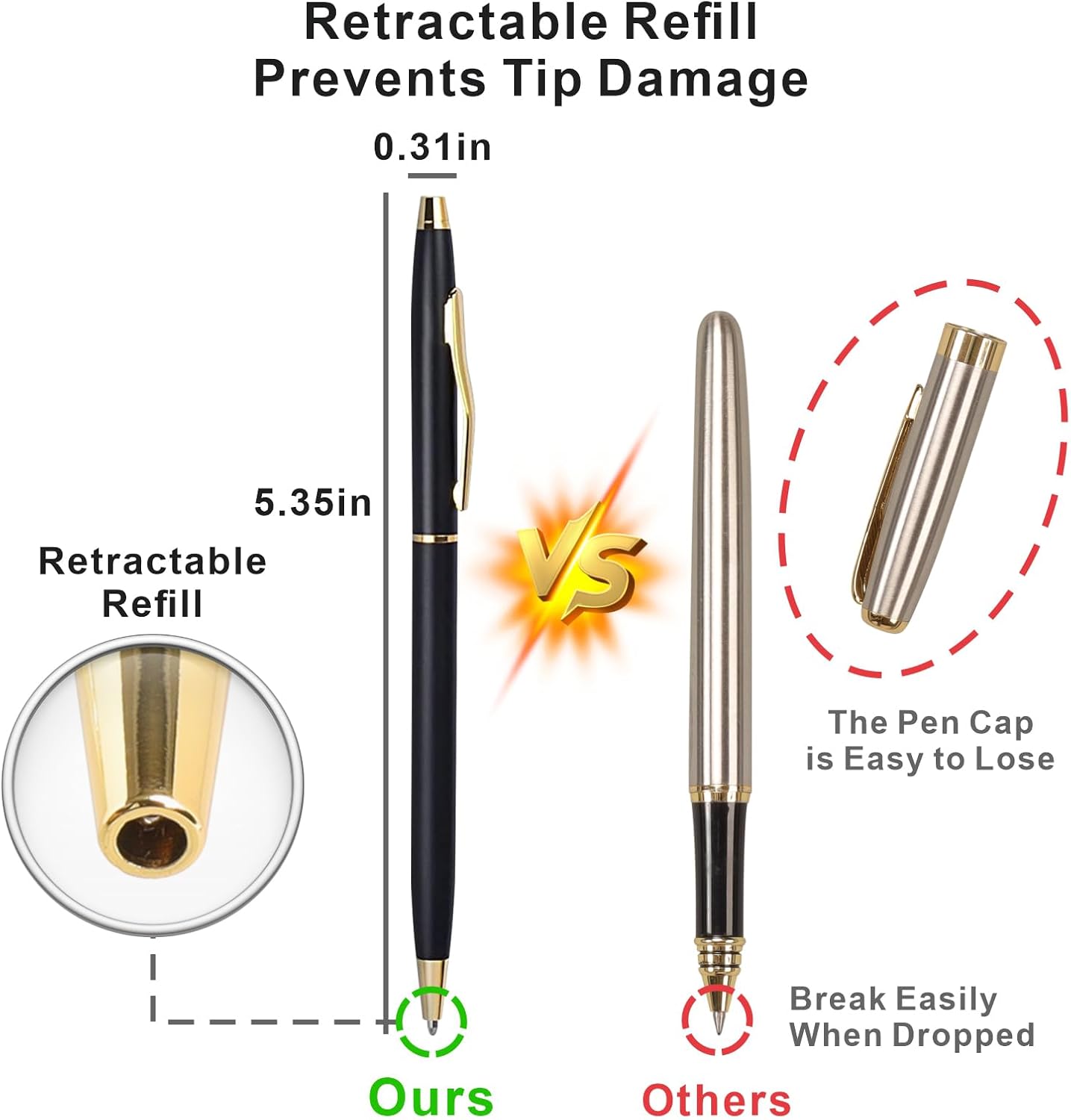 - Smooth Writing Metal Pen: Engineered for flawless ink flow, delivering a seamless writing experience (approx. writing length: 1,600 ft / 500 m)