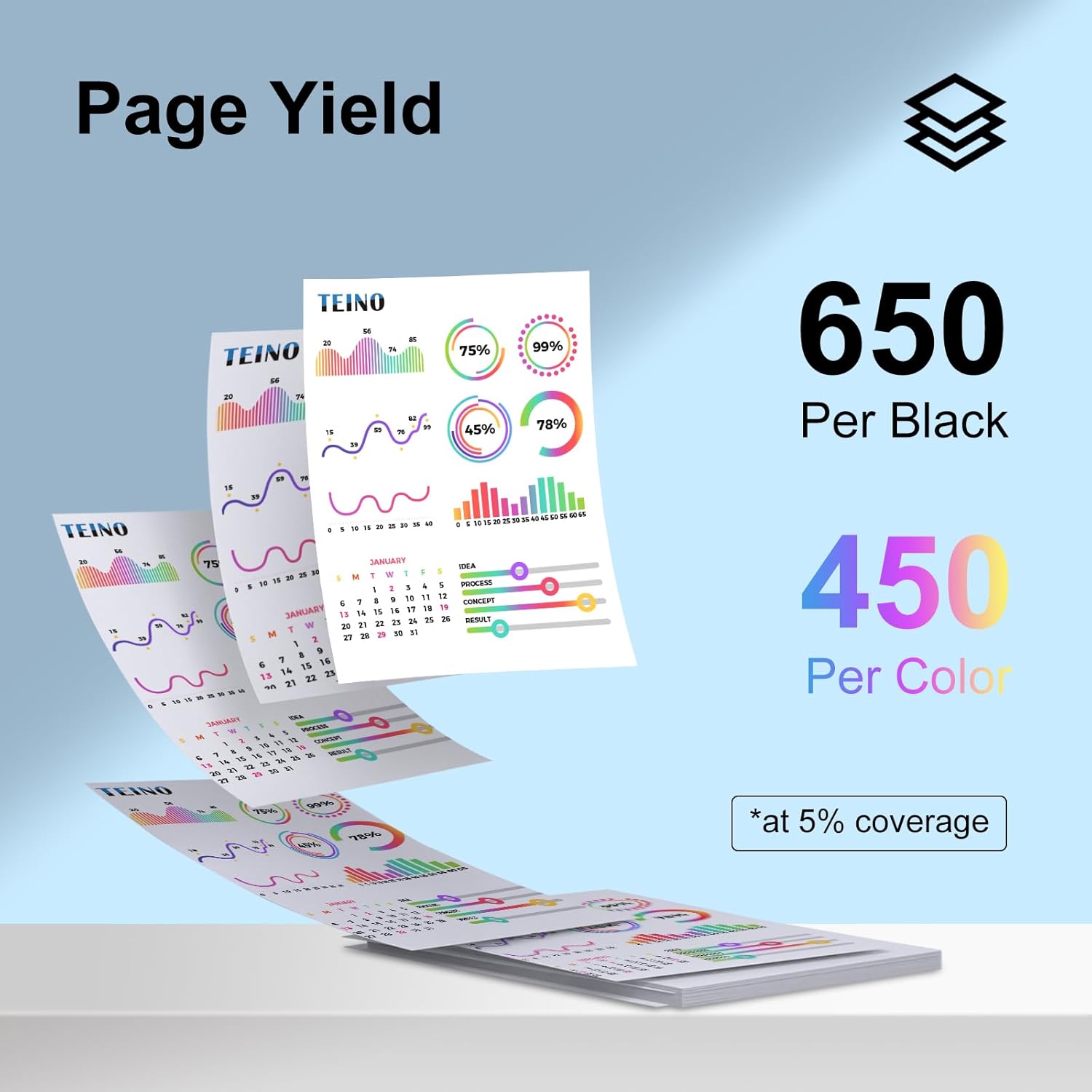 - TEINO ink cartridges display ink level real-time, deliver crisp, clear images and text. An ideal choice for home, office, school users looking for professional quality printing