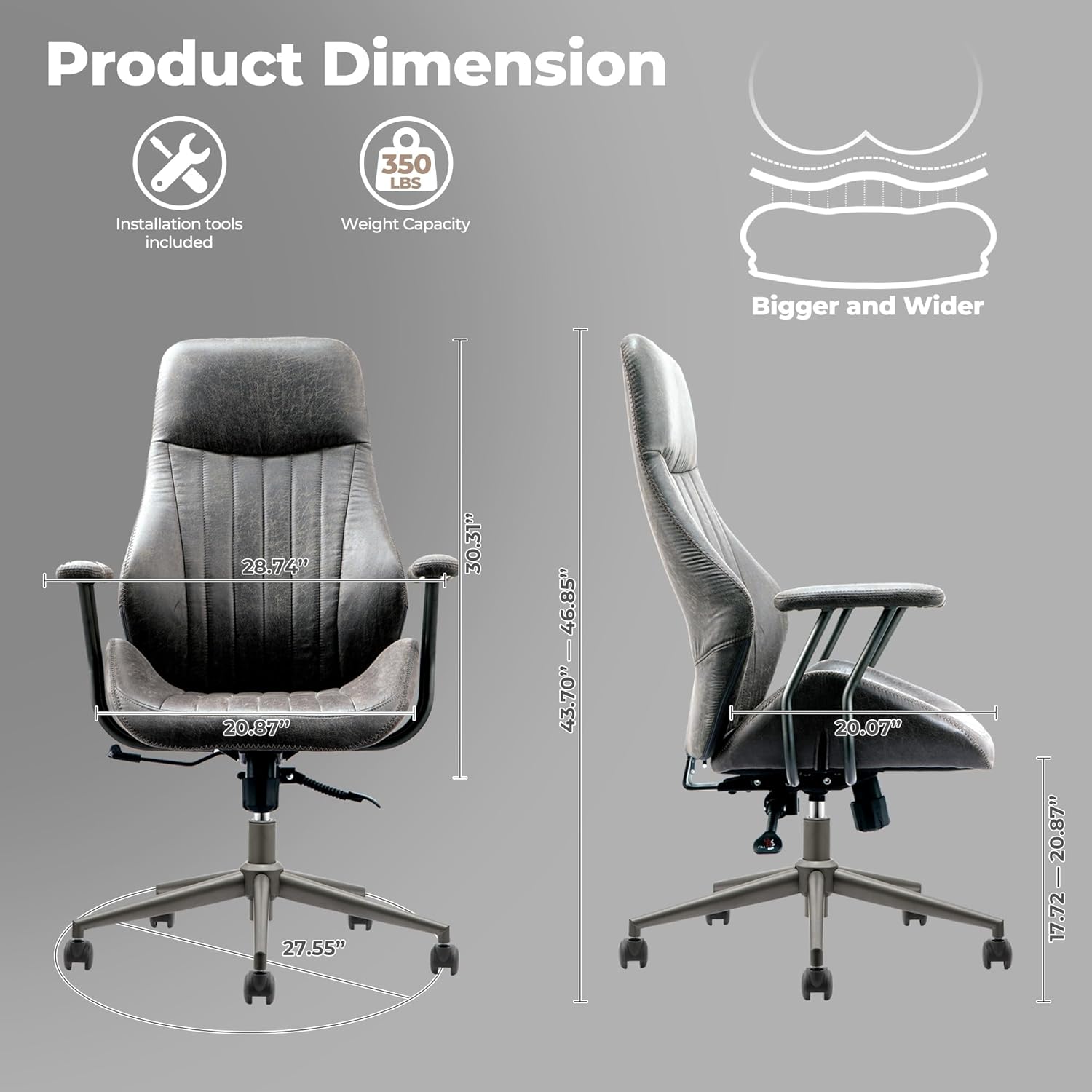- Comfy Ergonomic Seat: This luxury executive chair is designed for ergonomics, 90° to 120° tilt adjustment, to adapt to your various sitting experience, you can adjust the strength of the tilt through the tension, so that you can relax and comfortable to do things, the removable armrests and height adjustment function can be applied to different heights of the desk. 360° swivel rotation rolling allows you to move more efficiently