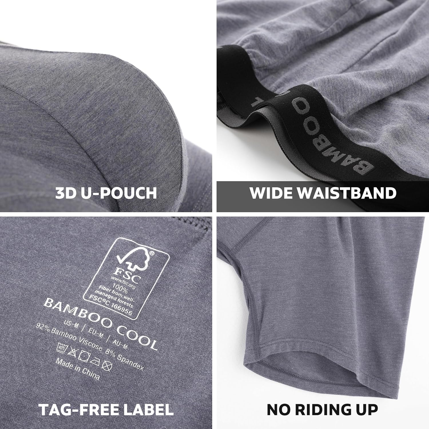 - PREMIUM MATERIAL: 92% Viscose Made From Bamboo and 8% Spandex,light and soft texture.It is 30% more breathable than cotton underwear and the average body temperature is 3°lower than cotton ones,bringing a fresh touch to your skin
