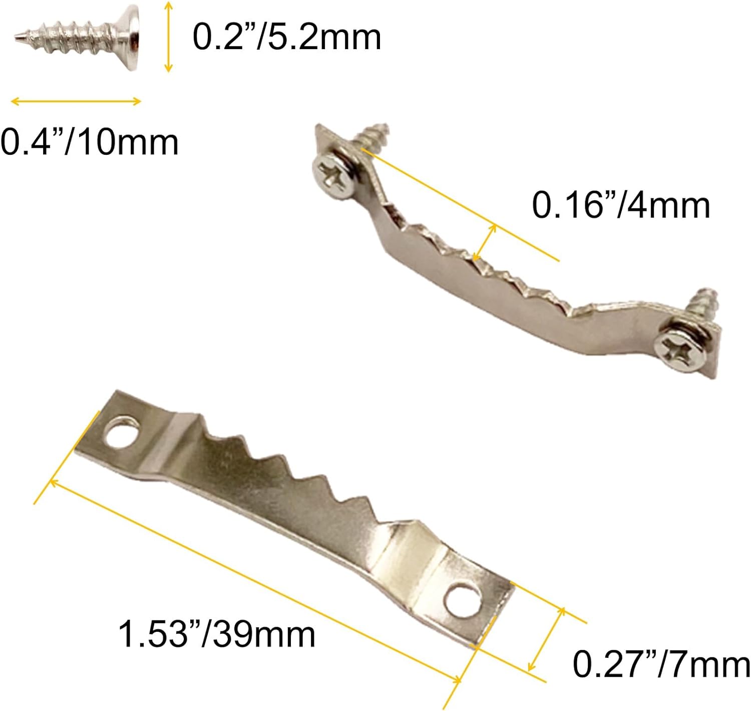 - Easy to used: Sawtooth Picture Hangers are secured with screws, easy to install and perfect for hanging wooden frame. Just nail the hanger to the back of the frames and hang to the wall hooks.