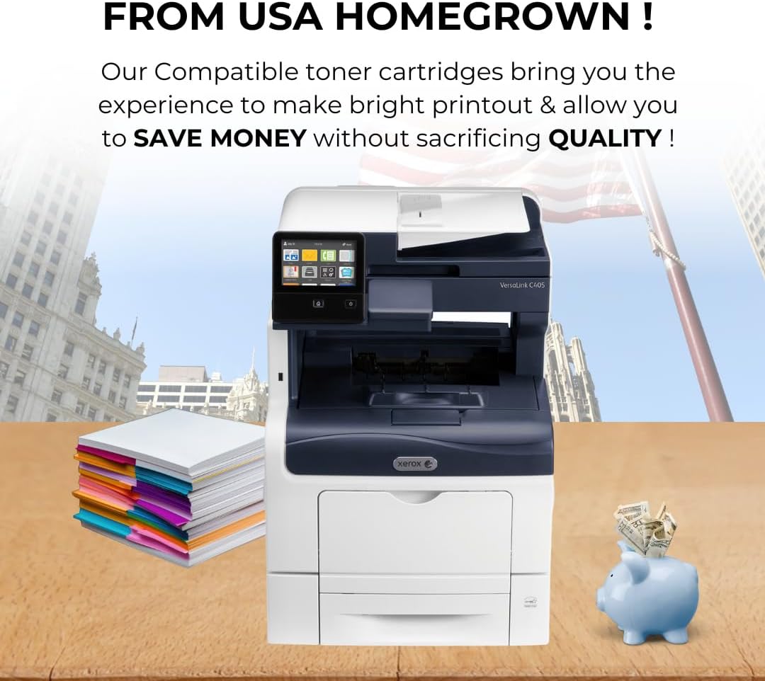 Toner Pros Replacement Toner Cartridge for Xerox 106R03524, 106R03525, 106R03526, 106R03527 ā Extra High Yield 4-Color Pack for VersaLink C400, C405 Printers ā Black: 10,500 & Color: 8,000 Pages Each