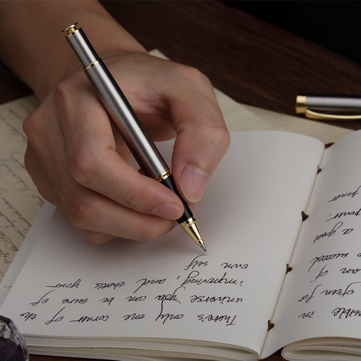 - Stainless Steel Body - Attractive business style stainless steel metal ballpoint pen, suitable weight can be comfortably held in the hand for writing. The pen is solid and more durable with a long life span. Although simple and minimalist, the matte silver exterior of each pen looks classy and sophisticated. Meets all your needs for signing checks, taking notes, filling out forms, etc. Best pen for use in a professional, office, or business setting.