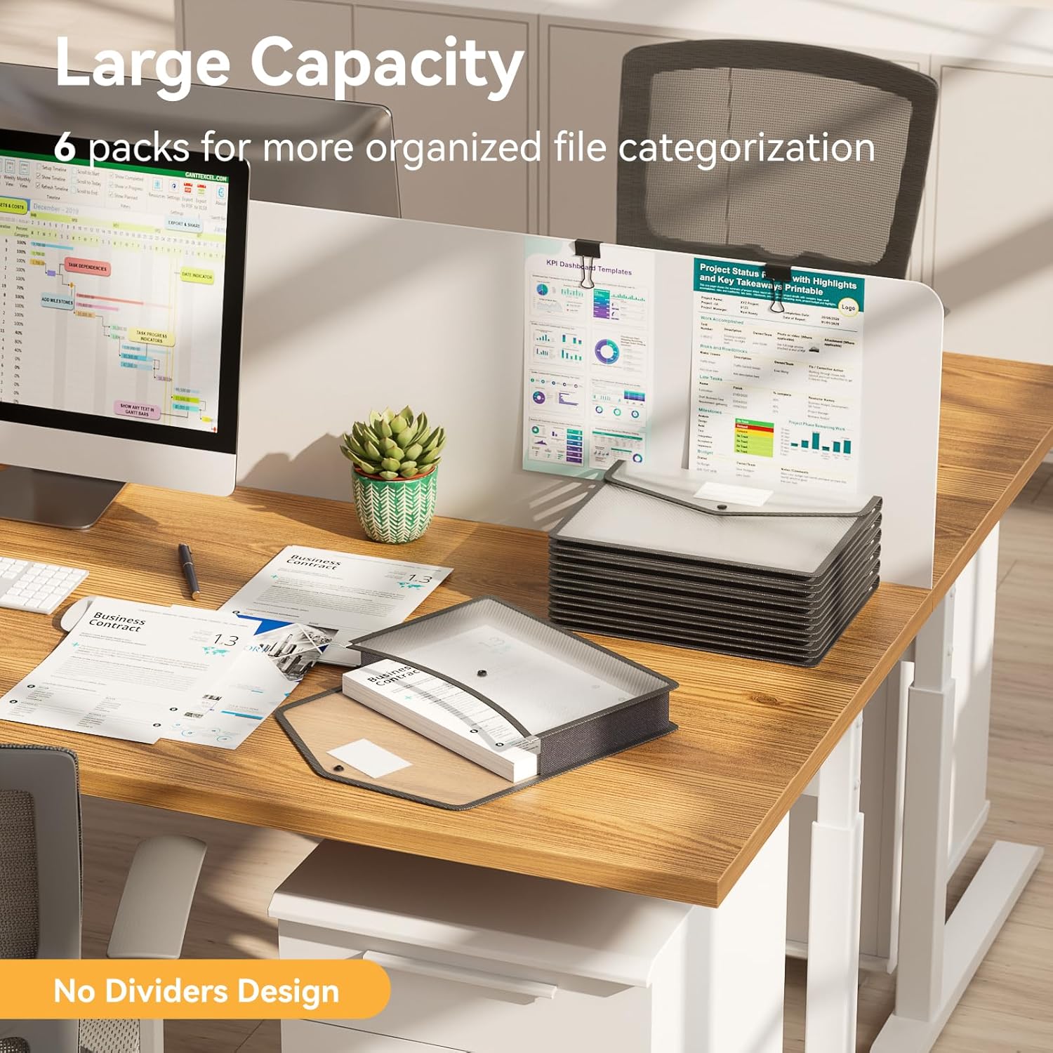 ABC life 6 Pack Plastic Expanding File Folder, Folders for Documents with Snap Closure, Black File Folder Organizer Holder, Transparent Accordion File Pouch,Large Capacity, Fit Letter/A4 Size - Black