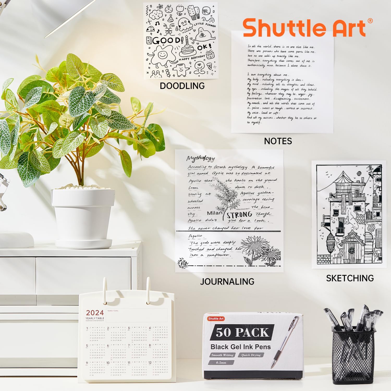 - 50 LARGE PACK: Shuttle Art 50 Pack Gel Ink Pens set are all with black ink. 50 Large Pack will be sufficient for your daily writing, marking and signing.