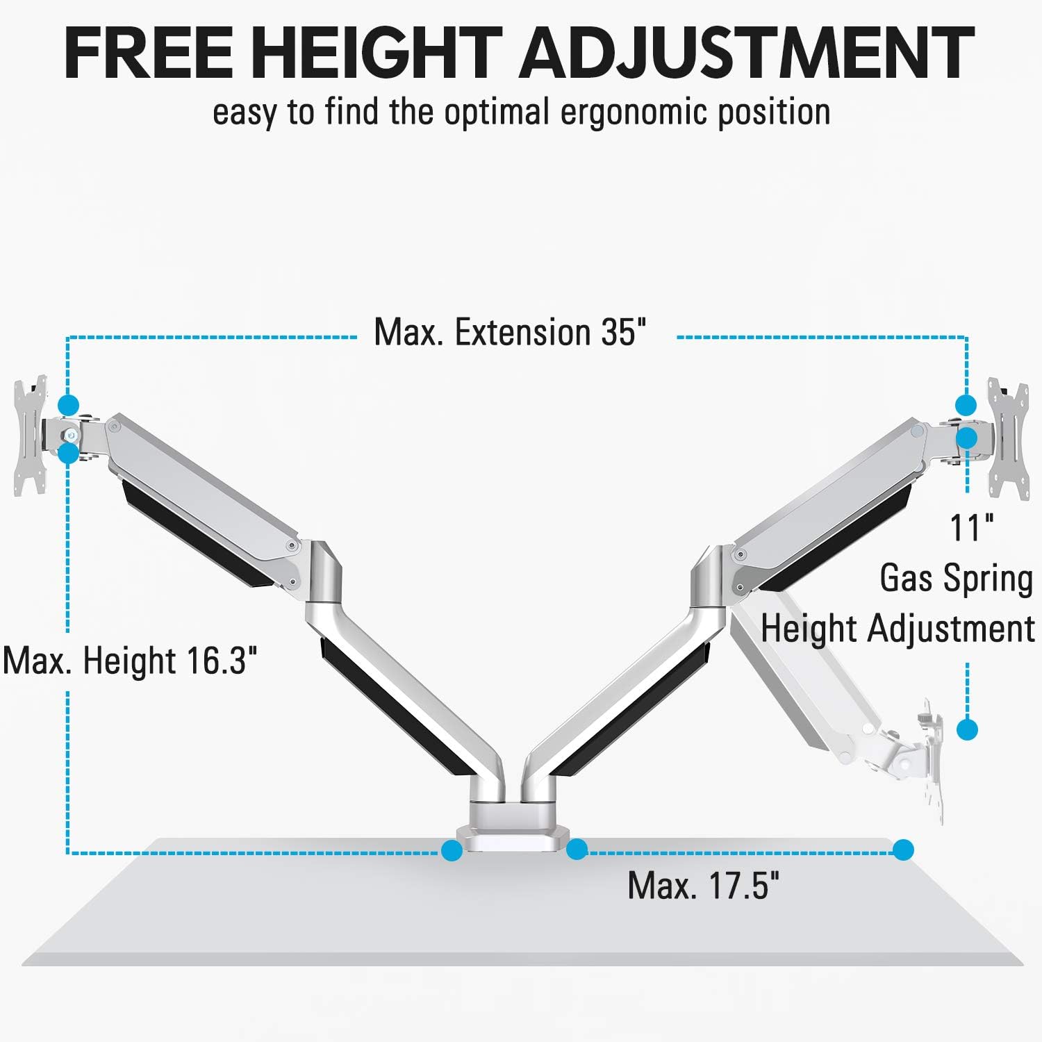 MOUNTUP Dual Monitor Desk Mount, Die-Cast Aluminum Fully Adjustable Double Monitor Arm with Gas Spring, Computer Monitor Stand Fits 2 Screen 17 to 32 inch - Each Arm Holds 3.3-17.6LBS, MU0024