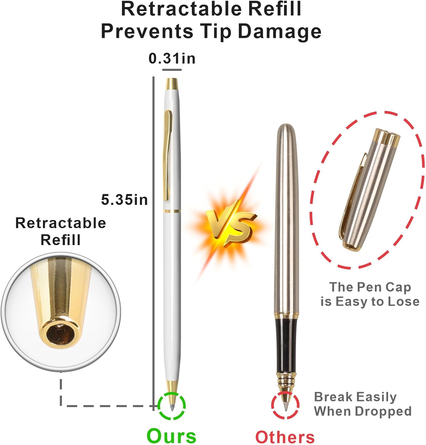- Comfortable Medium Point Pen: Perfect weight and round barrel for writing comfort, meet all your needs for signing contracts, journaling, or marathon study sessions. These metal pens are built with metal construction for a long time use
