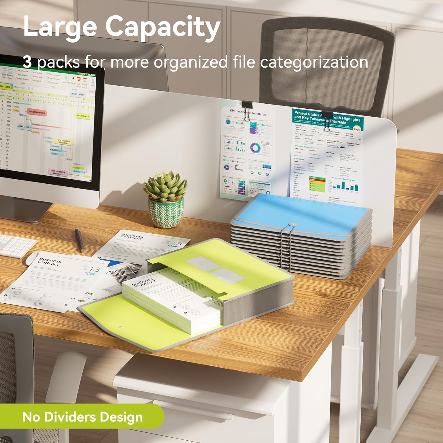 ABC life 3 Pack Expanding File Folder Organizer Poly Pockets A4/Letter Size, Plastic Expandable File Wallet/Colorful Document Folder with Elastic Closure, Premium Accordion File Pouch, 2 Card Holder