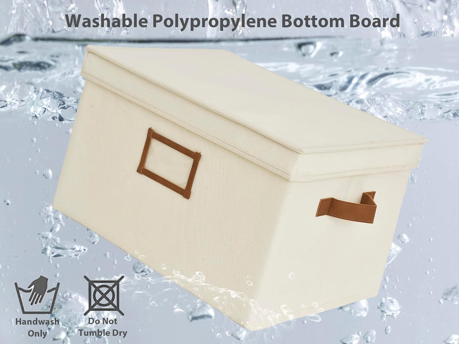 StorageWorks Storage Bins with Lids, Decorative Storage Boxes with Lid and PU Handles, Foldable Storage Baskets for Closet, Shelves, Stackable, Ivory White, Jumbo, 3-Pack