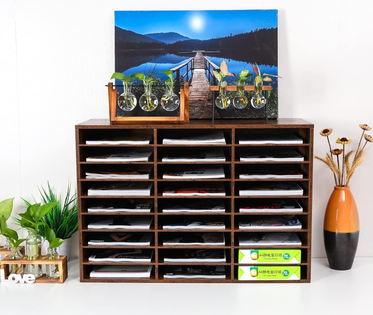 - ▶Amazing Storage Capacity and Space-saving Design. Total 27 compartments, it can help you sort, store and organize literature, magazines, comic books, files, student assignments, binders, catalogs, diaries, papers and documents on your desk or counter quickly and easily and get you valuable workspace back