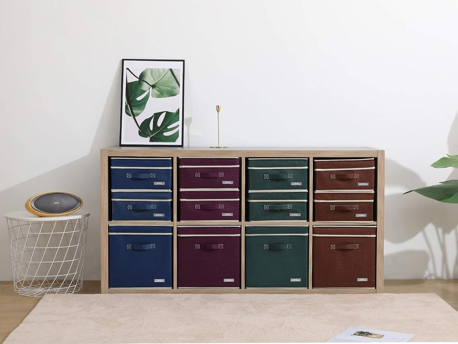 YueYue Foldable Fabric Closet Organizer Bins Box Storage - 4 Pack 12.4 X 12 X 6.7 Inch Storage Bins With Lids 4 Dark Color Boxes - Bins Storage Box Cloth Basket Pack Lid
