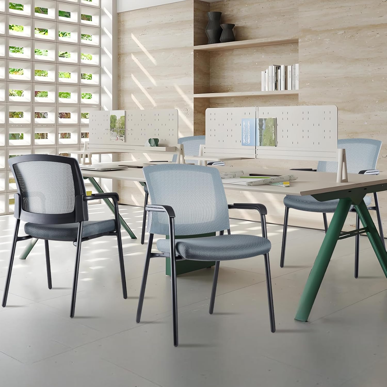 CLATINA Office Reception Guest Chair Mesh Back Stacking with Ergonomic Lumbar Support and Thickened Seat Cushion for Waiting Conference Room Gray 4 Pack