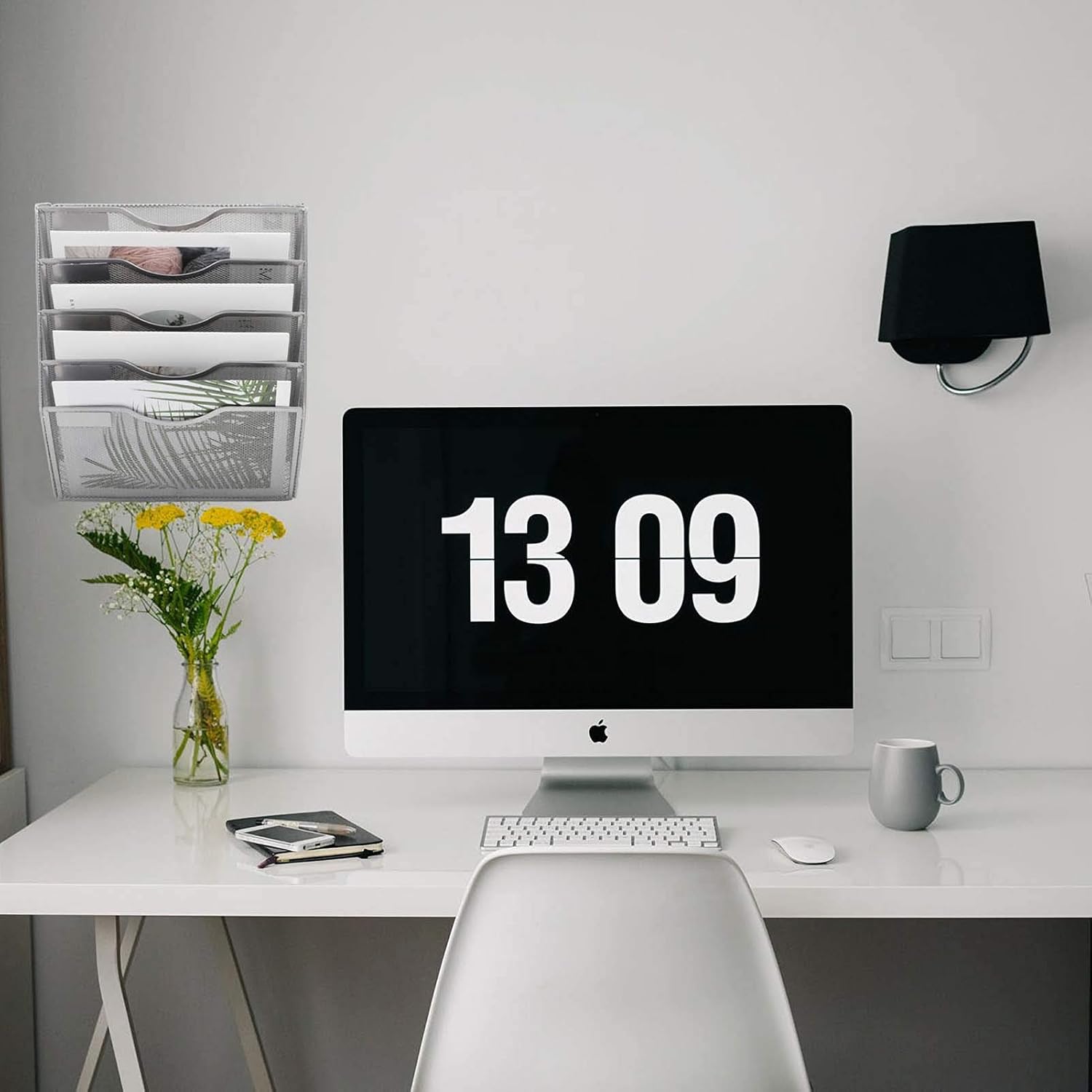 EASEPRES 5 Pocket Mesh Hanging Wall File Organizer, Wall Mounted Mail Paper Document Folder Holder, Clipboard Storage Organization Magazine Rack with Nametag Label for Office Home School, Silver