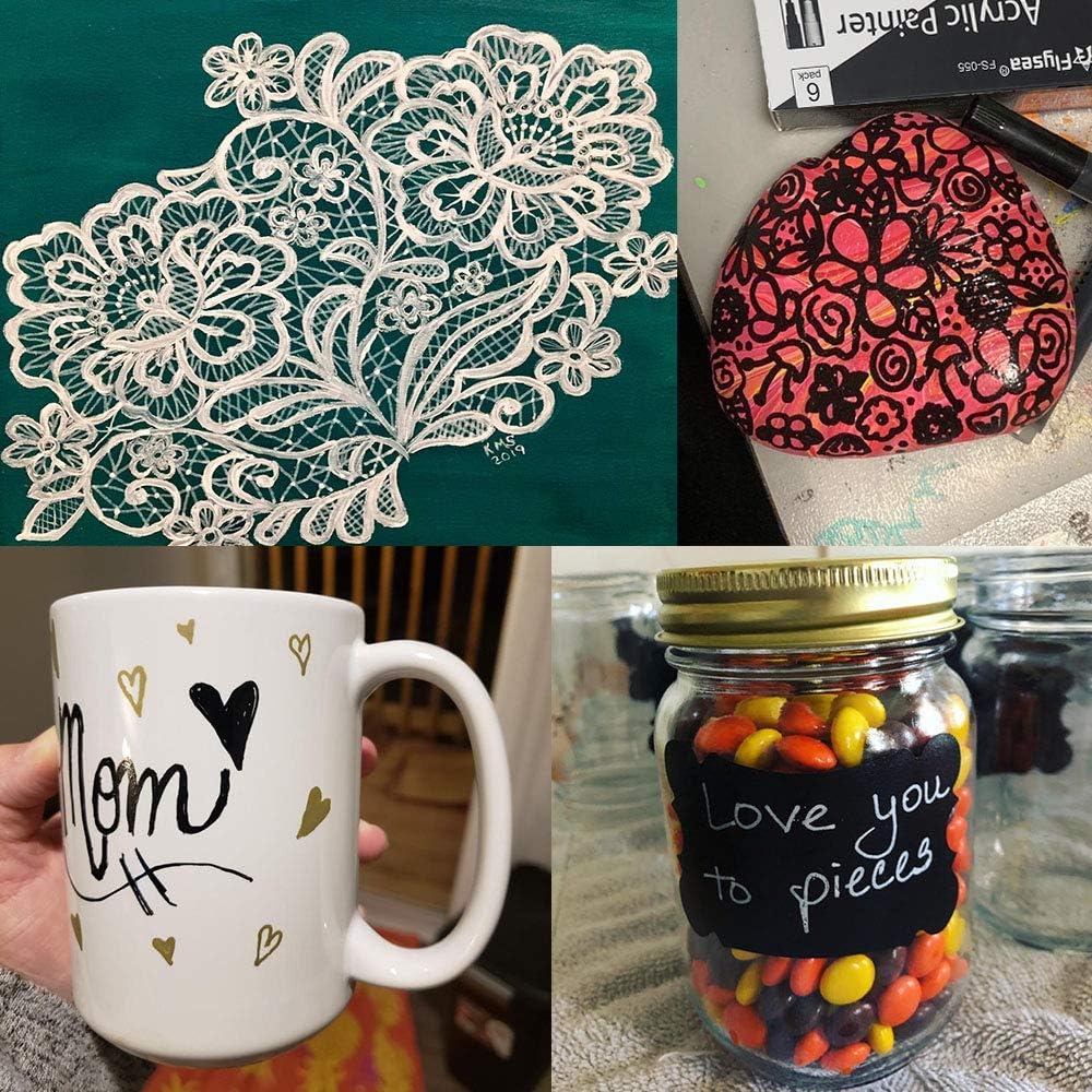 - 【High Quality and Safe】Package with 3 pcs Black +3 pcs White. Acrylic paint pens are made with high quality oil ink - abundant ink, High purity color, strong covering force,waterproof, fade proof, non-bleeding. non-toxic, no odor, no strong smell. Conform to ASTM D-4236 & EN71-3.