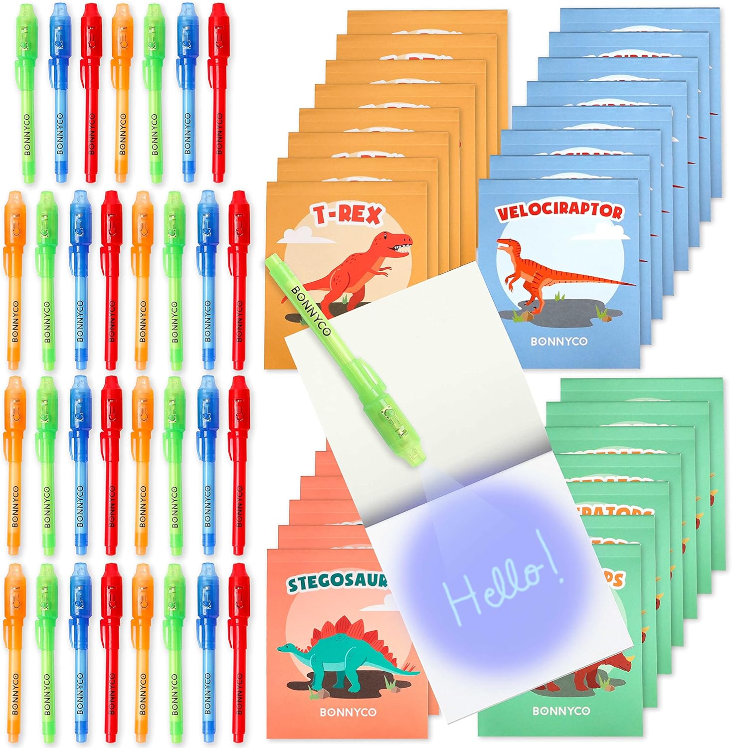 BONNYCO Invisible Ink Pen and Notebook Pack 32 Dinosaur Party Favors for Kids, Magic Spy Pen Goodie Bags Stuffers for Kids, Dinosaur Birthday Party Supplies, Goody Bag Stuffers Return Gifts Prizes