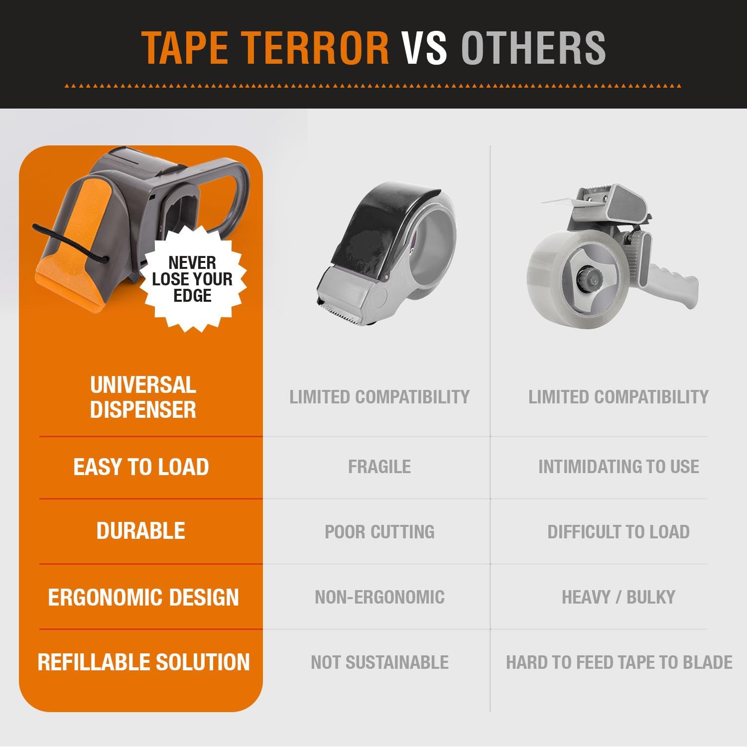 - Universal Compatibility: This dispenser fits tapes up to 2 inches wide with standard 3-inch cores, including carton sealing, duct, drywall mesh, and masking tapes.