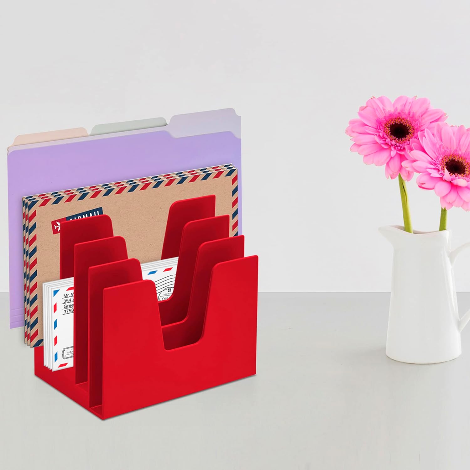 Acrimet 5 Section Incline File Sorter Organizer, Mail, Folder, Letter Desk Organizer, Rack for Office Organization Desktop (Plastic) (Solid Red Color)