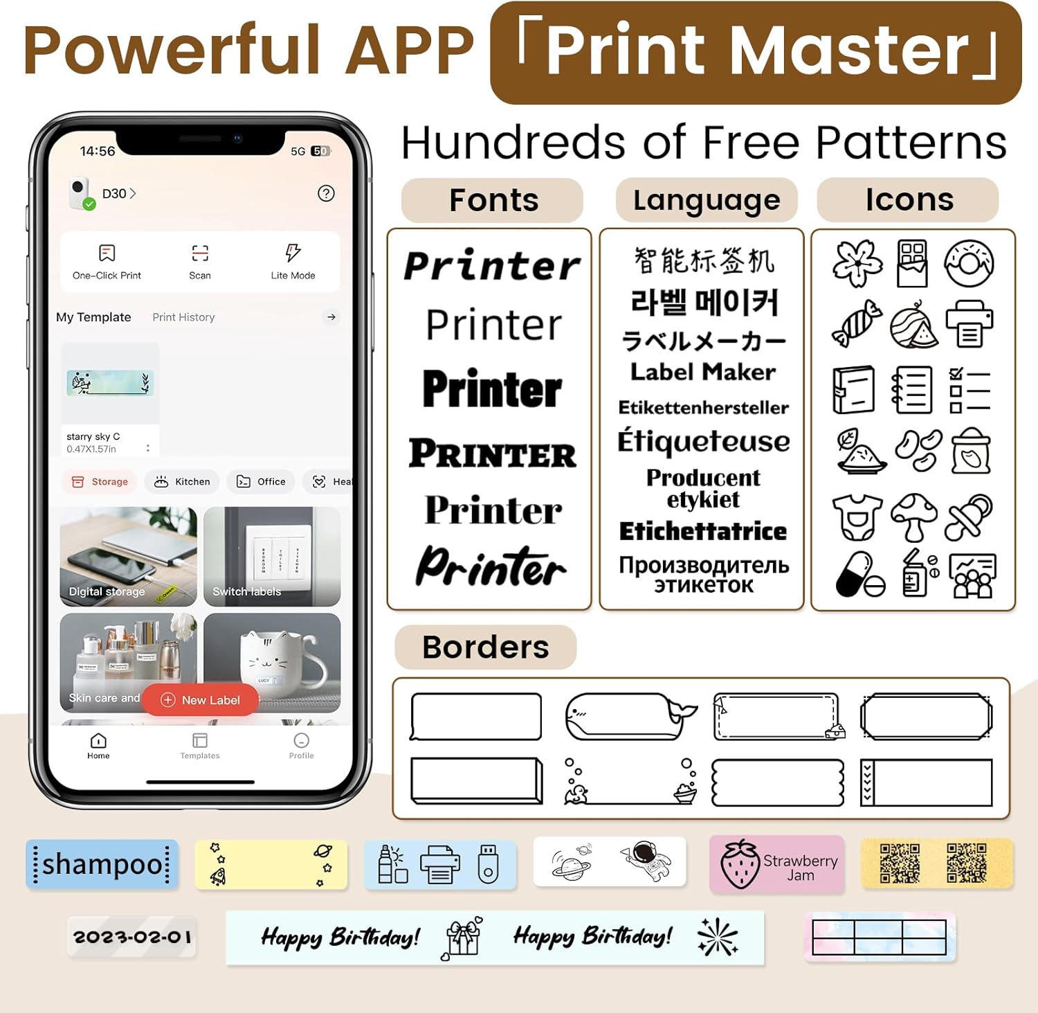 - Multiple Creative Functions & Label Templates - Choose from 1000+ symbols, 60+ frames, and a variety of fonts. Enjoy convenience and save time. Easily create various label designs using the app, including icons, text, tables, symbols, logos, barcodes, QR codes, images, timestamps, Excel imports, scanning, OCR, and voice recognition. Itโs fun and effortless!