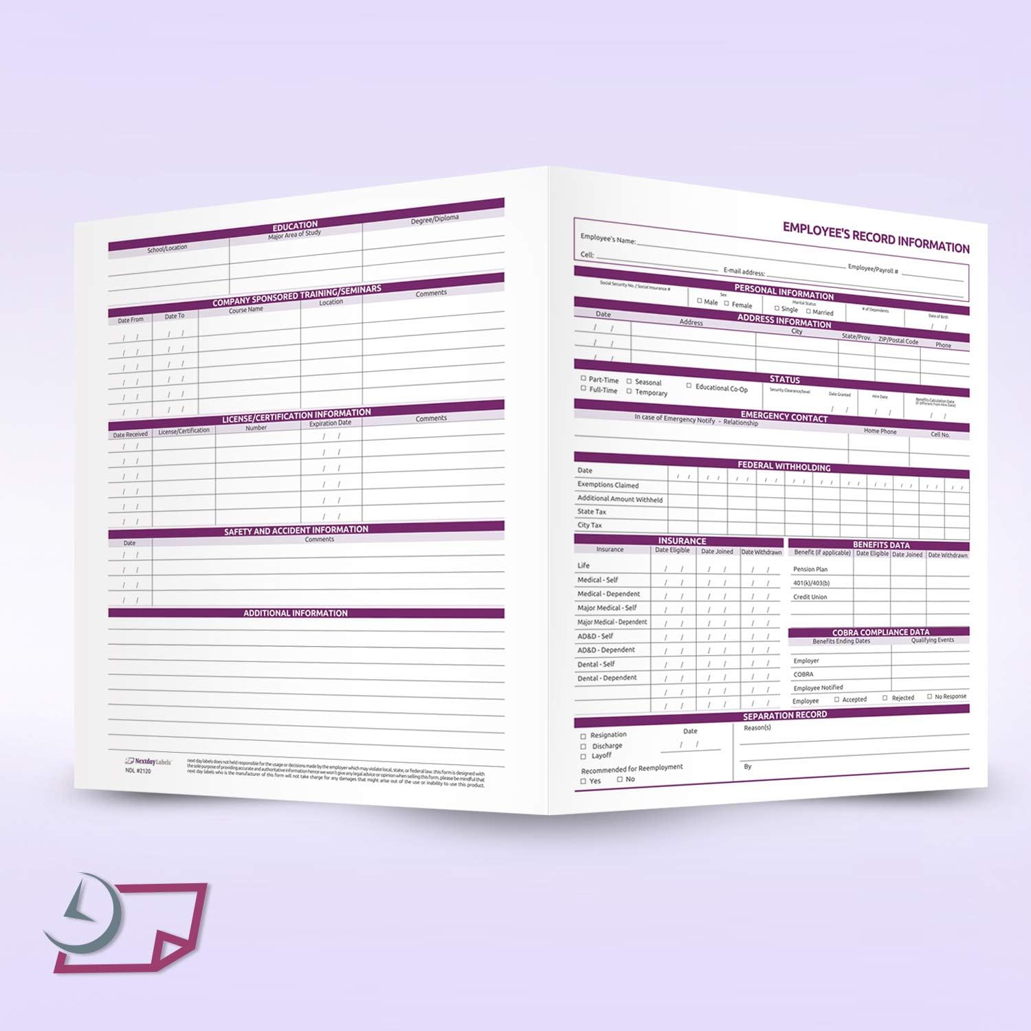 - 25-PACK OF EMPLOYEE RECORD FOLDERS: Includes 25 heavyweight employee file folders with preprinted sections for organized HR recordkeeping. Ideal for offices, schools, and human resources departments