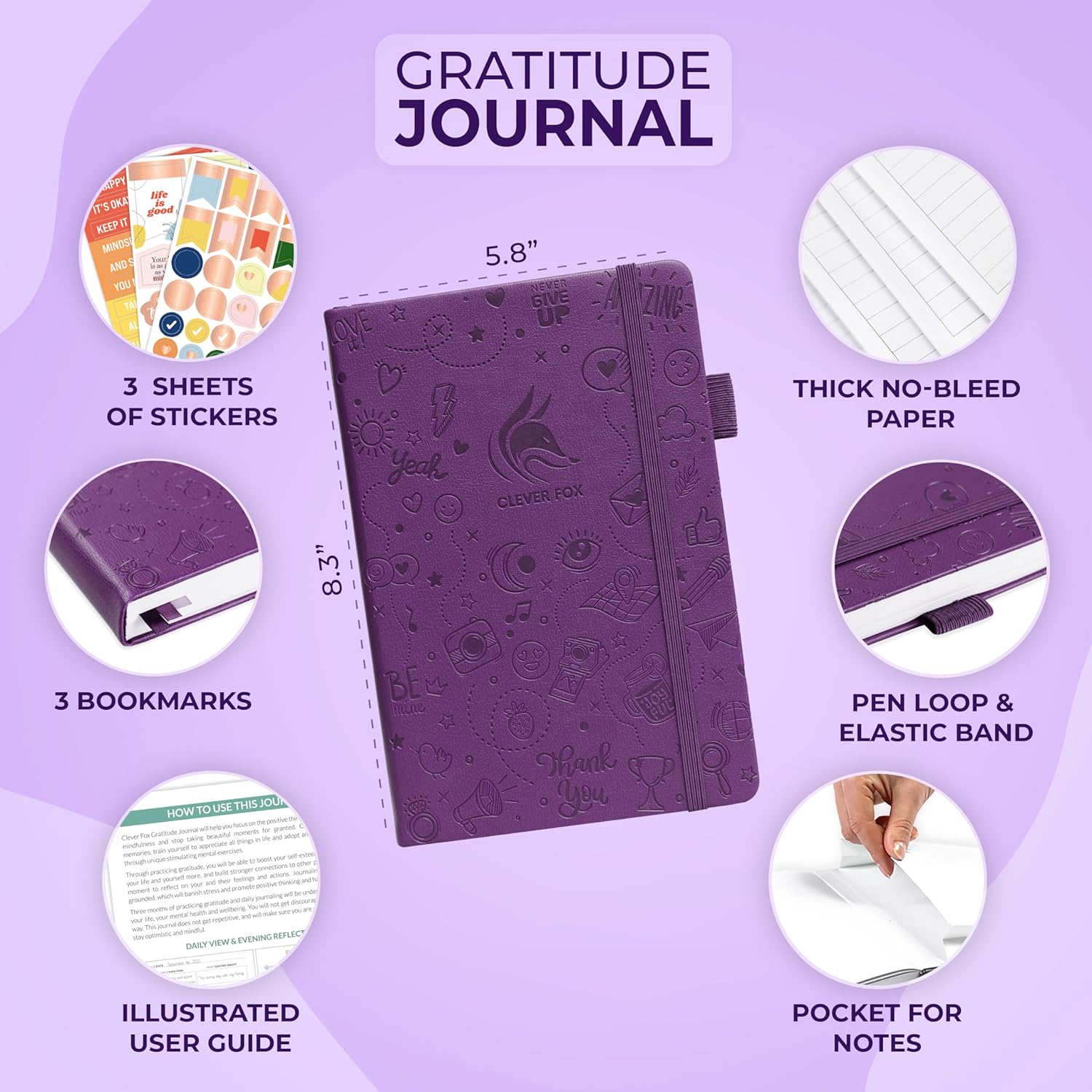 Clever Fox Gratitude Journal – Happiness, Positivity & Affirmation Daily Journal – Inspirational Daily Notebook – 3 Months, A5 (Purple)