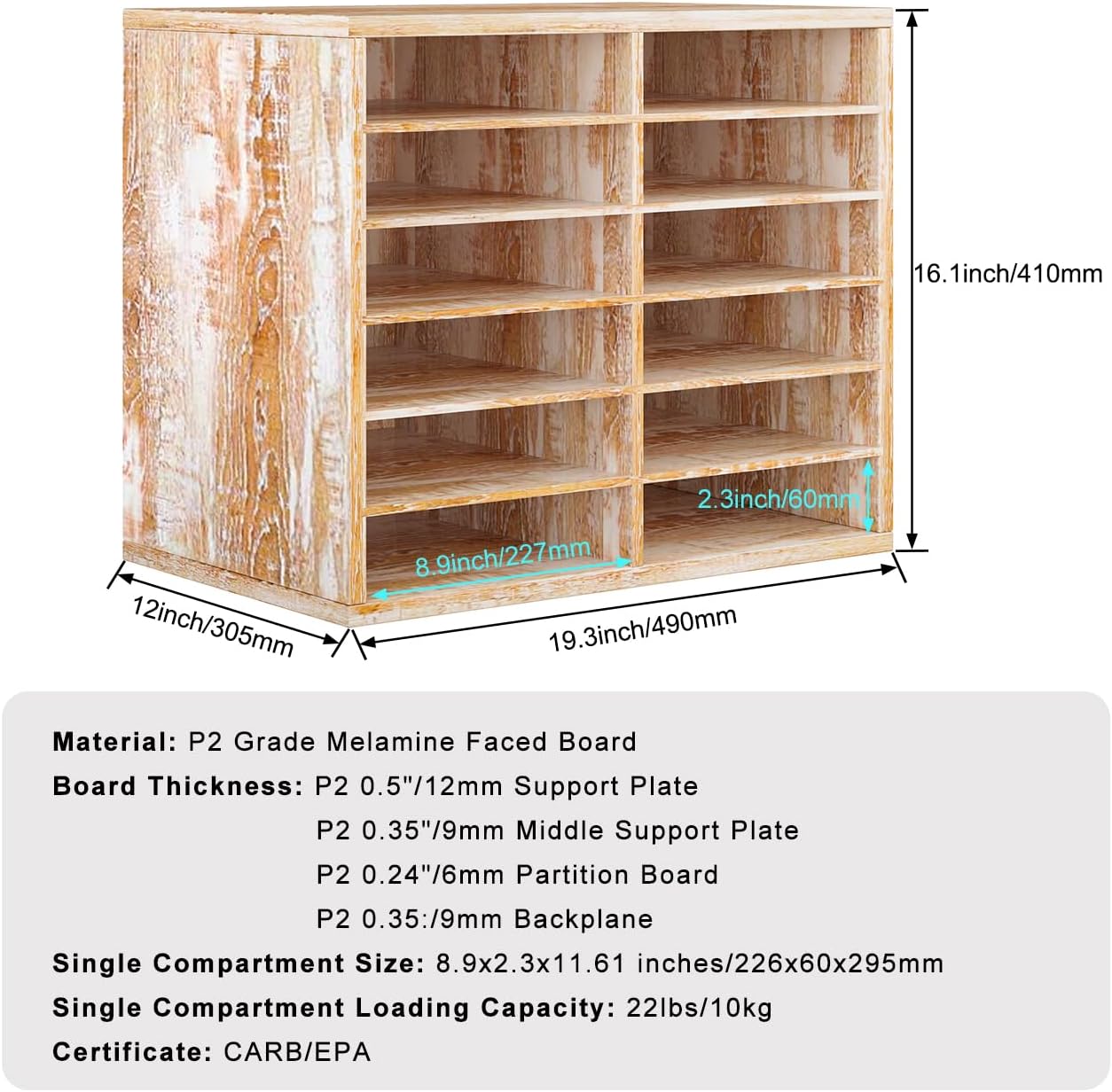 PAG Countertop Mail Sorter Organizer, Wooden Literature Organizer, Student Mailbox for Classroom, Desktop Bill Organizer for Office Home School, 12 Compartments, Retro White