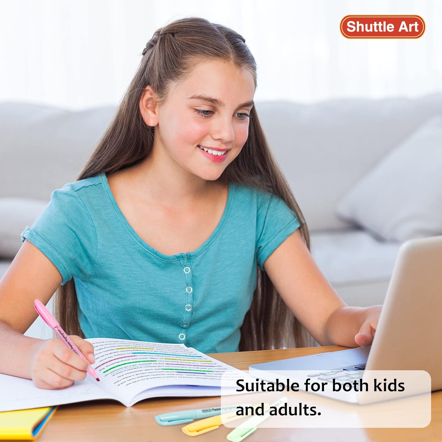 - VERSATILE CHISEL TIP: Shuttle Art pastel highlighter set with versatile and durable chisel tips are perfect for both broad highlighting and fine underlining with different needs. Narrow barrel shape of comfortable holding makes it suitable for both kids and adults.
