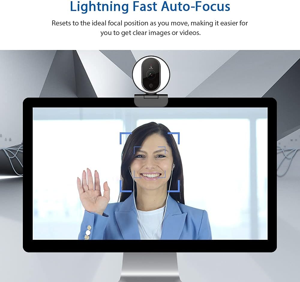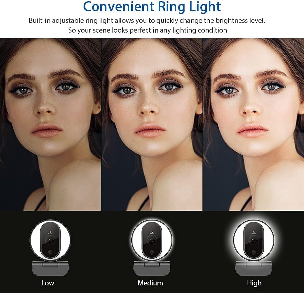 - Video Capture Resolution : 1080P Webcam with Ring Light and Microphone