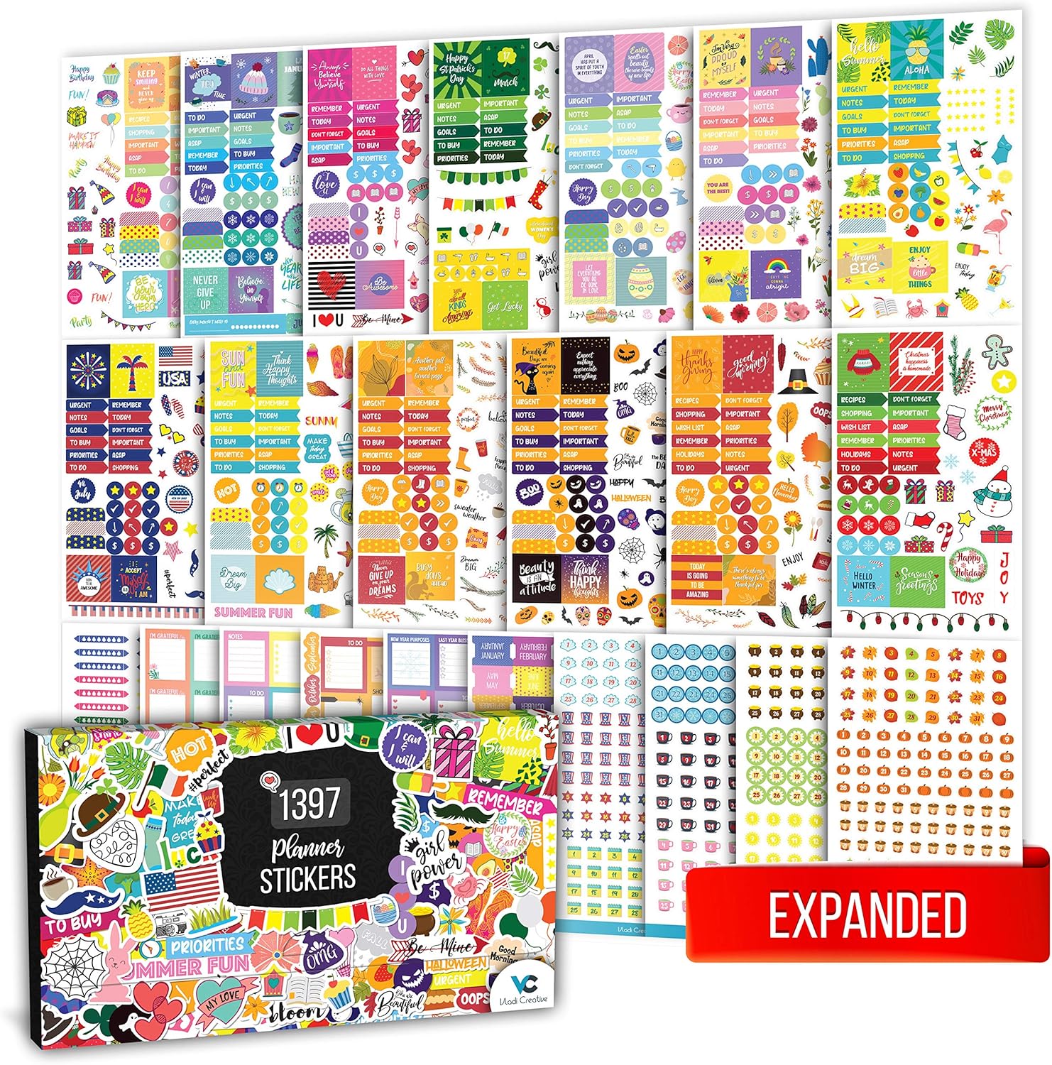 [Expanded] Vladi Creative Aesthetic Monthly Planner Stickers – 1397 pcs / 23 Sheets – Seasonal, Holiday, Productivity & Decorative Stickers for Women – Perfect for Calendars, Journals, & Scrapbooking