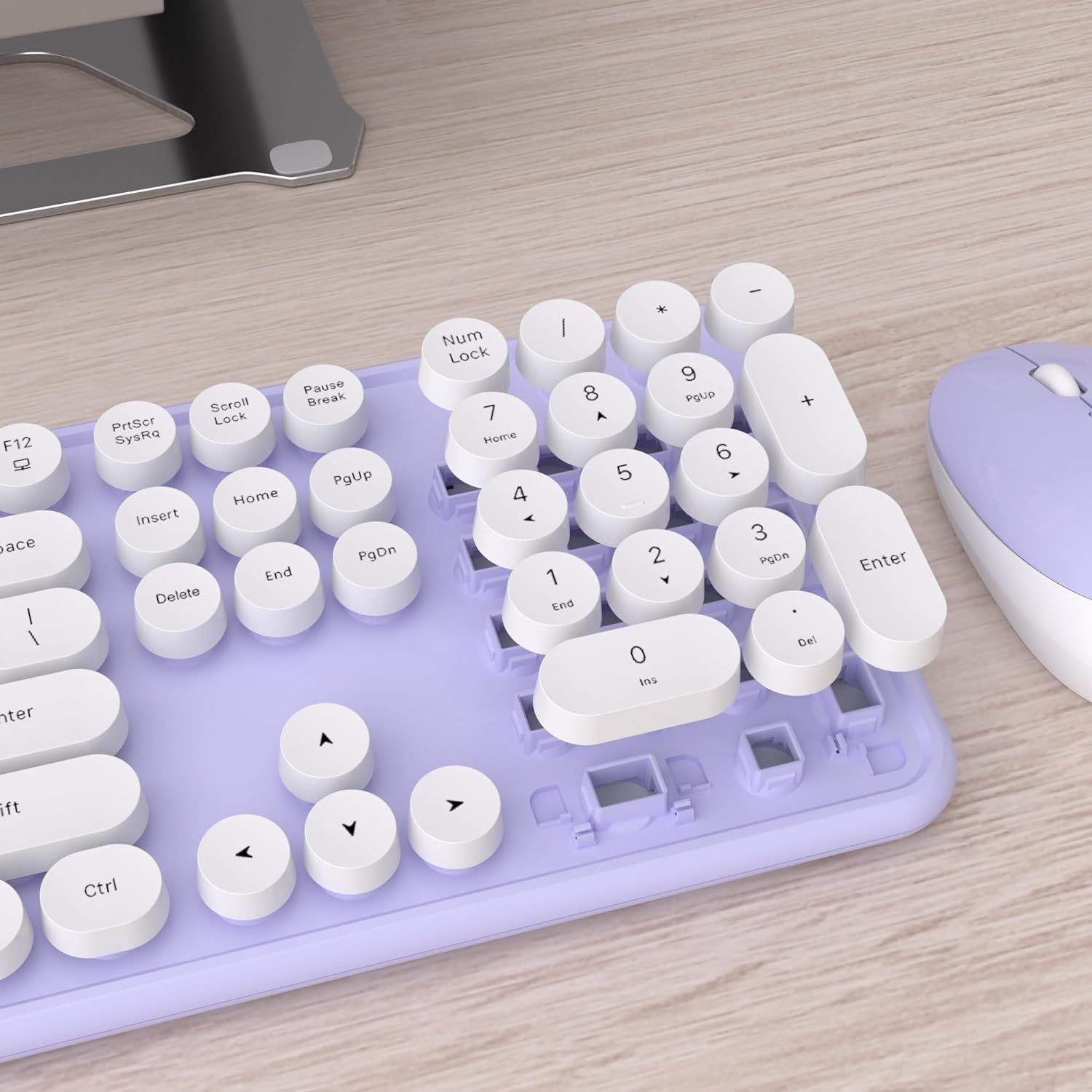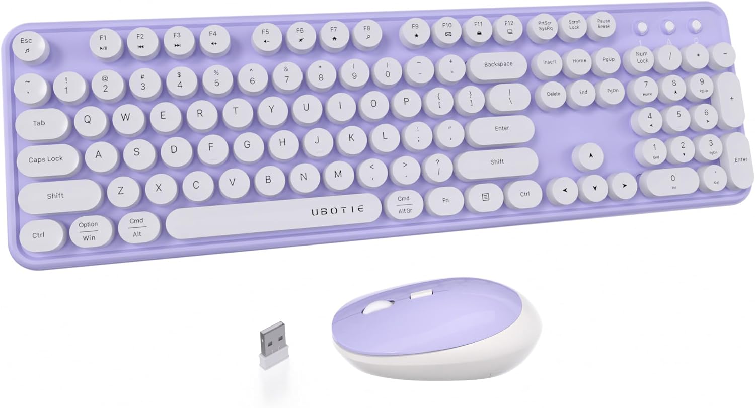 UBOTIE Colorful Computer Wireless Keyboards Mouse Combo, Typewriter Flexible Keys Office Full-Sized Keyboards, 2.4GHz Dropout-Free Connection and Optical Mouse (Purple-White)