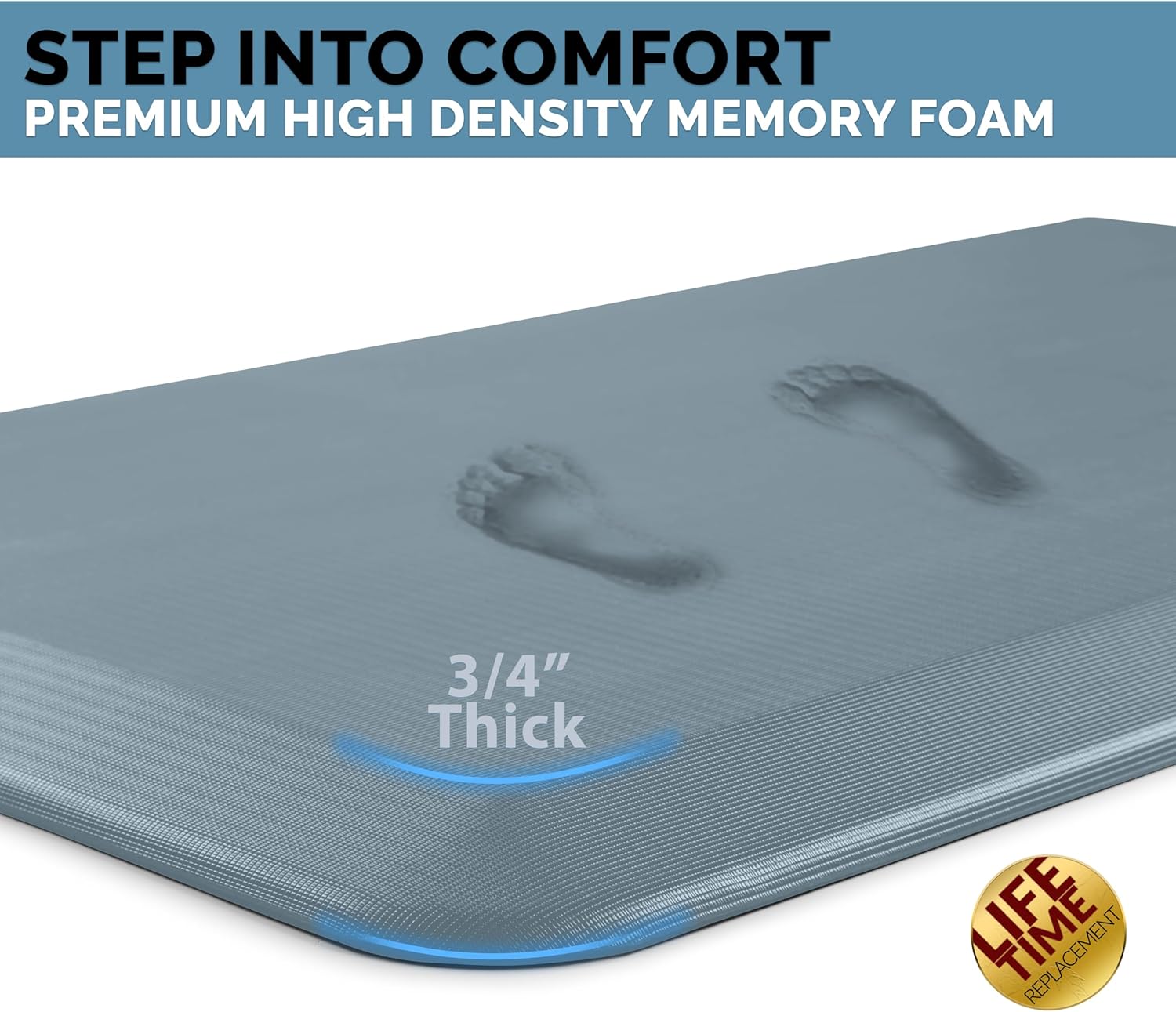 - The ComfiLife cushioned mat core is made of 3/4 thick, high-density foam that reduce discomfort on feet, knees, legs, and back while standing for an extended period