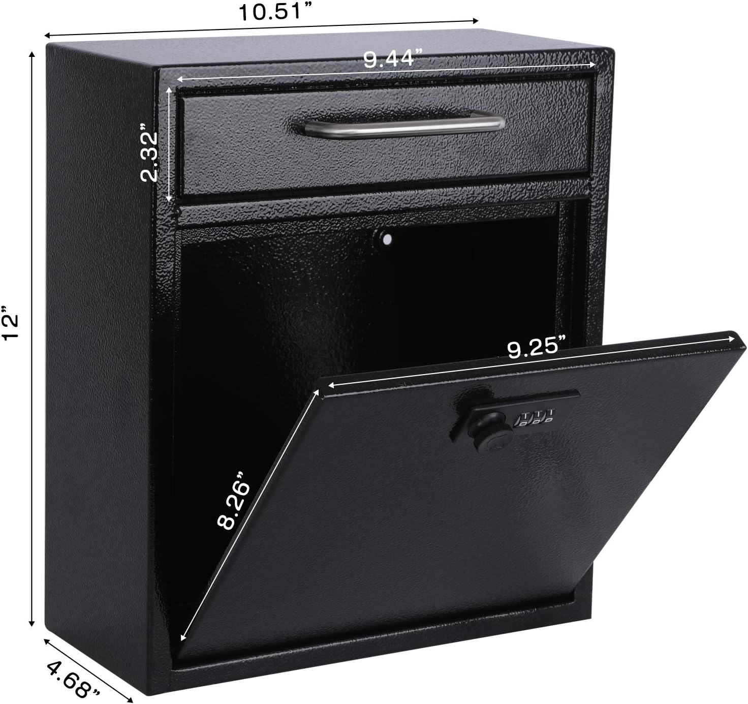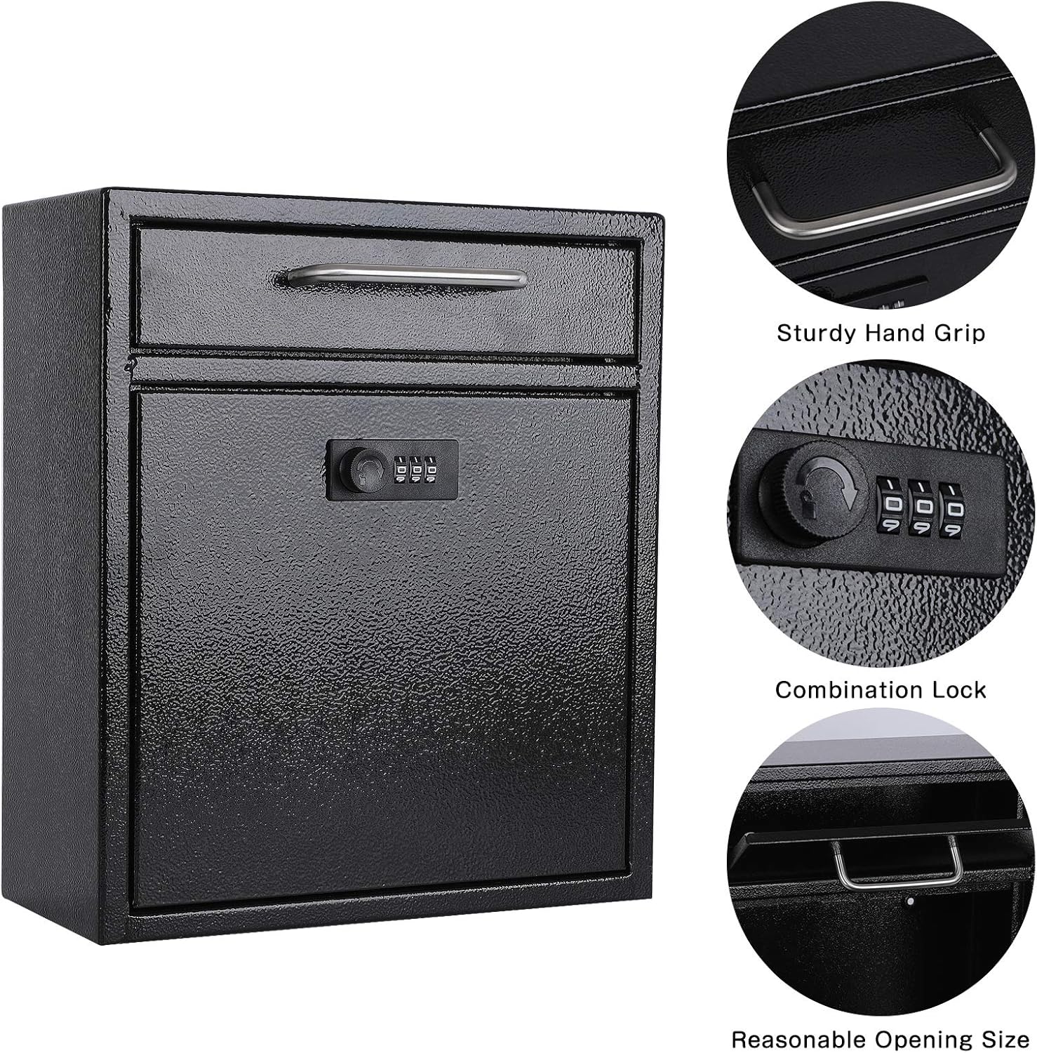 xydled Wall-Mount Mailboxes with Combination Lock, Steel Combination Lock Mail Boxes Outdoor, Locking Wall Mount Mailbox, Security Key Drop Box, 13.4H x 11.6L x 5.8W Inches, Black, Large