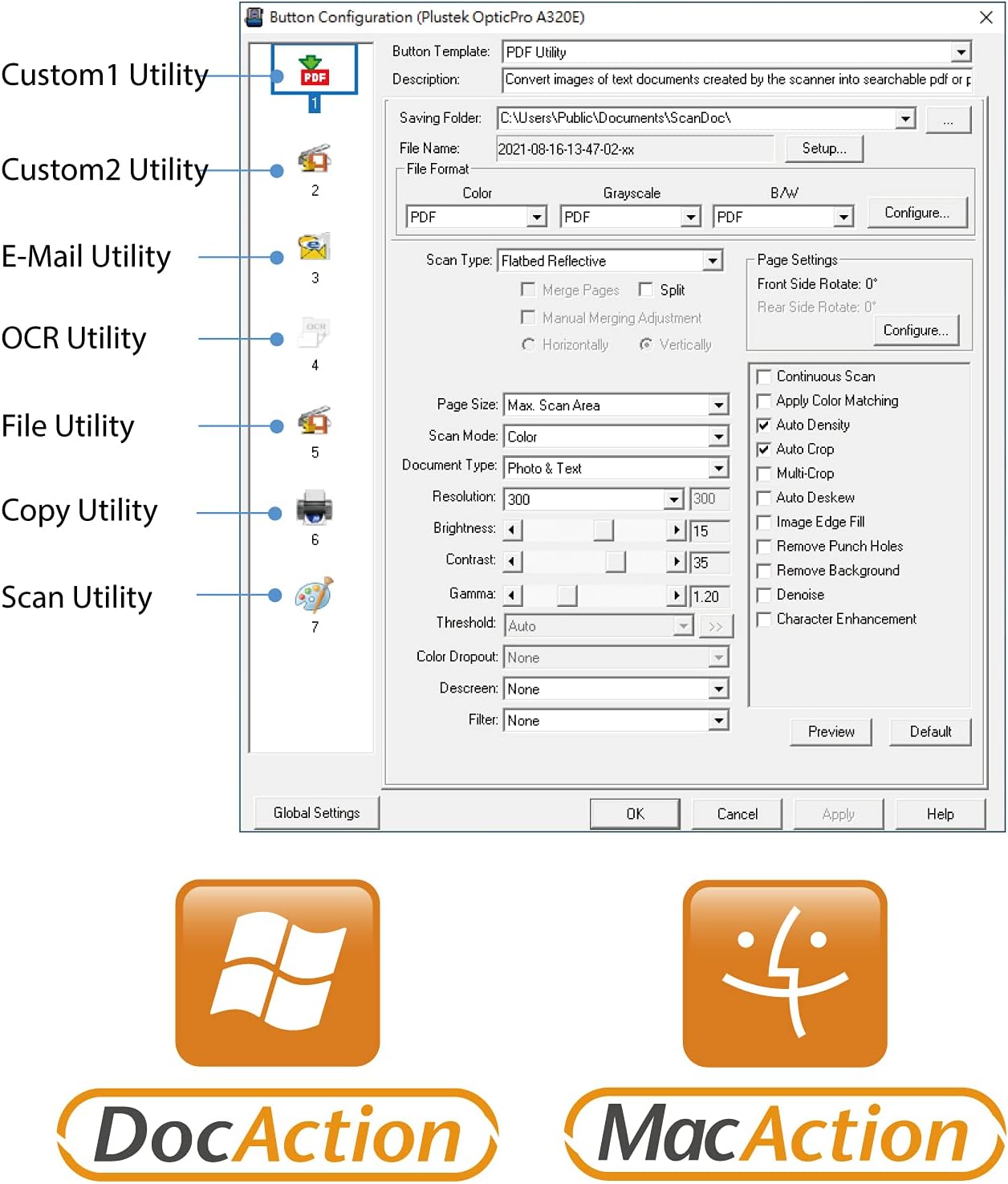 - [EASY FILE MANAGEMENT] - With Doc Action, you easily scan and save to different file format. It also provides quick access to post-scan destinations, including scan-to-print, email, Windows Public Folder, FTP Web Folder. OCR function can enables searchable content on your scanned PDFs for greater productivity.