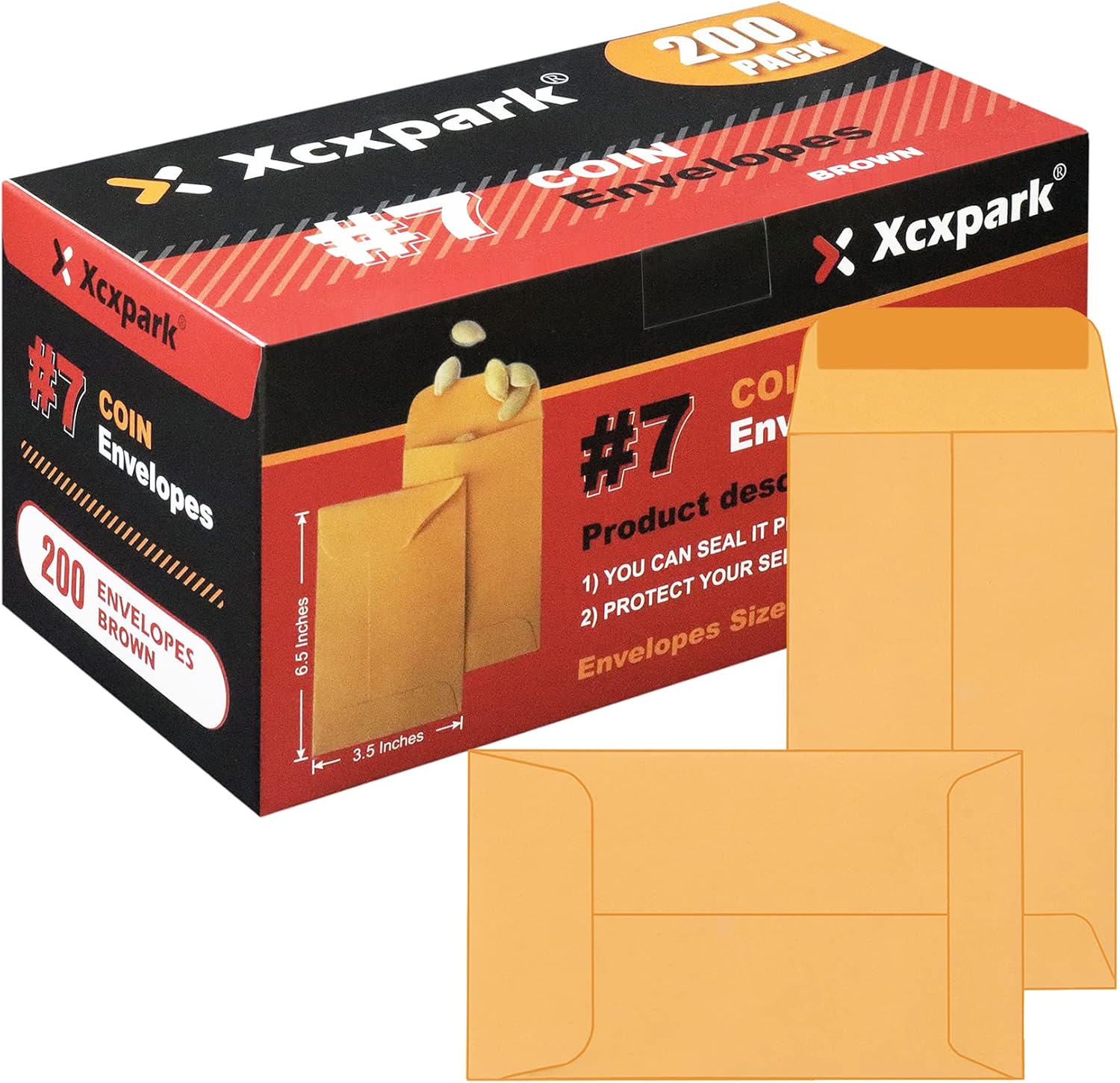 200PCS #7 Coin Envelopes 3.5x6.5 inches Brown Kraft Envelopes Classic Small Parts Gummed Flap for Coins, Cash, Credit Cards, Seeds