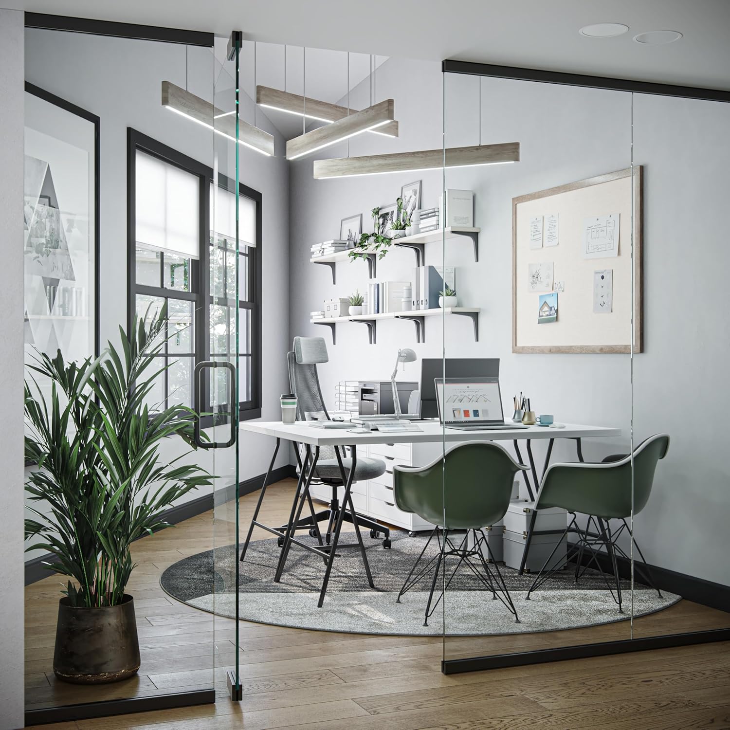- SHARE, CREATE, COLLABORATE: Elevate your environment and share your ideas, inspiration, and important notes effortlessly with this 47"x35" bulletin board that adds a contemporary touch to any office, classroom, or home decor
